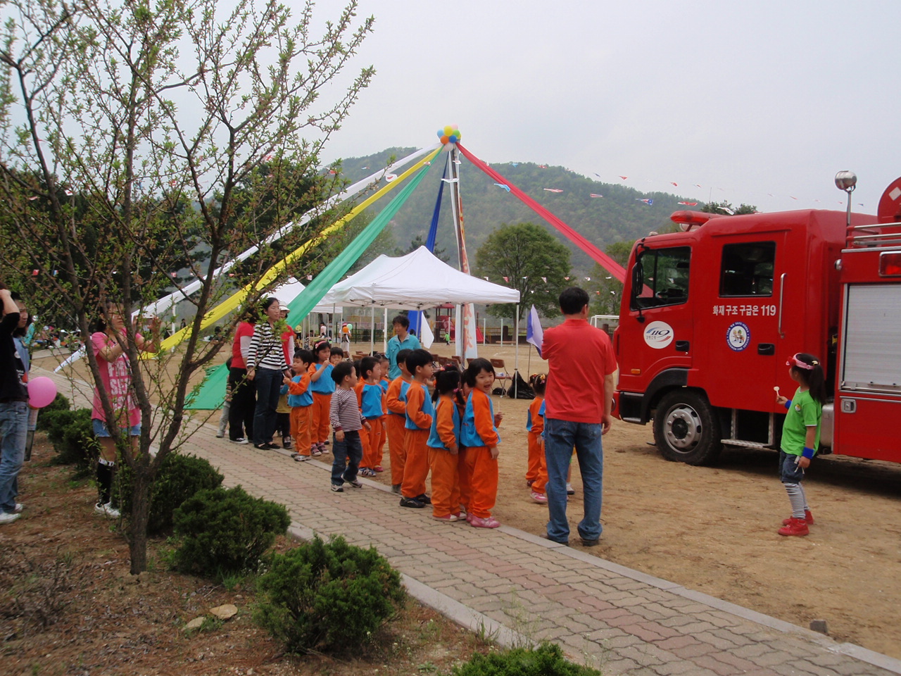 부론의용소방대(대장 김진수)와 부론여성의용소방대(대장 김윤수)에서는 5월4일 오전10시 부터 약 2시간 동안 부론초등학교 운동장에서 관내 초등학생과 유치원생 그리고 학부형과 남.여 의소대원등 150여명이 참여한 가운데 소방시험행사를 가졌습니다. 이날 행사에서는 소방호스로 직접 물을 분사해서 소화 하는 과정등 평소 접해 보지 못한 일들을 직접 경험해 보면서 소방업무에 대한 보다 친근한 이해를 하게 되었고 어린이들이 직접 소방차에 시승해 보는등 즐거운 한때를 보냈습니다.