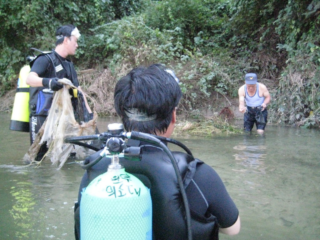 원주의용소방대(대장 조성일)는 9월16일 간현관광지 삼산천 계곡에서 대원 30명이 수중스레기를 스킨스크버장비를 이용하여 100리터정도를 수거했다