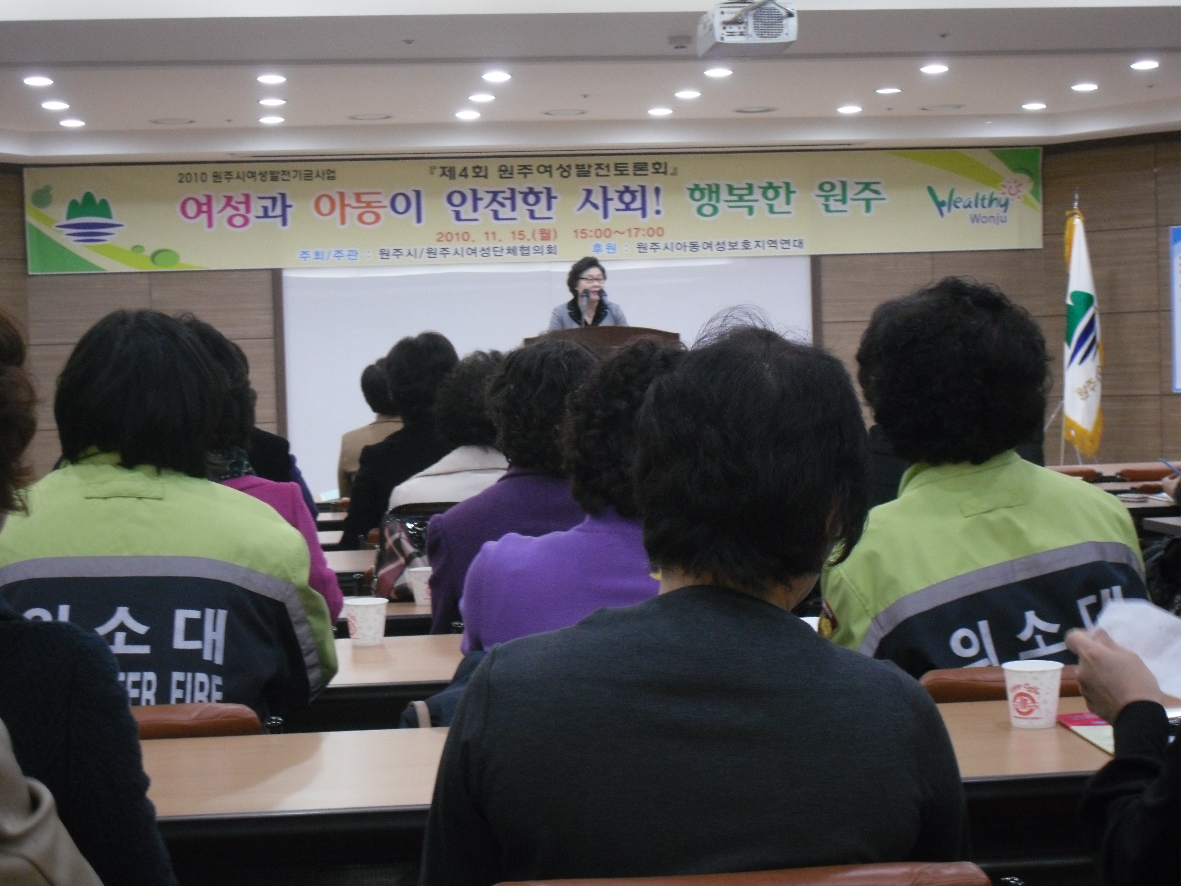 2010년 11월 15일(월) 15:00~17:00 원주시여성의용소방대연합회(회장 오오석)는 원주시여성단체협의회 주관으로 실시된 제4회 원주시 여성발전토론회에 참석했습니다.