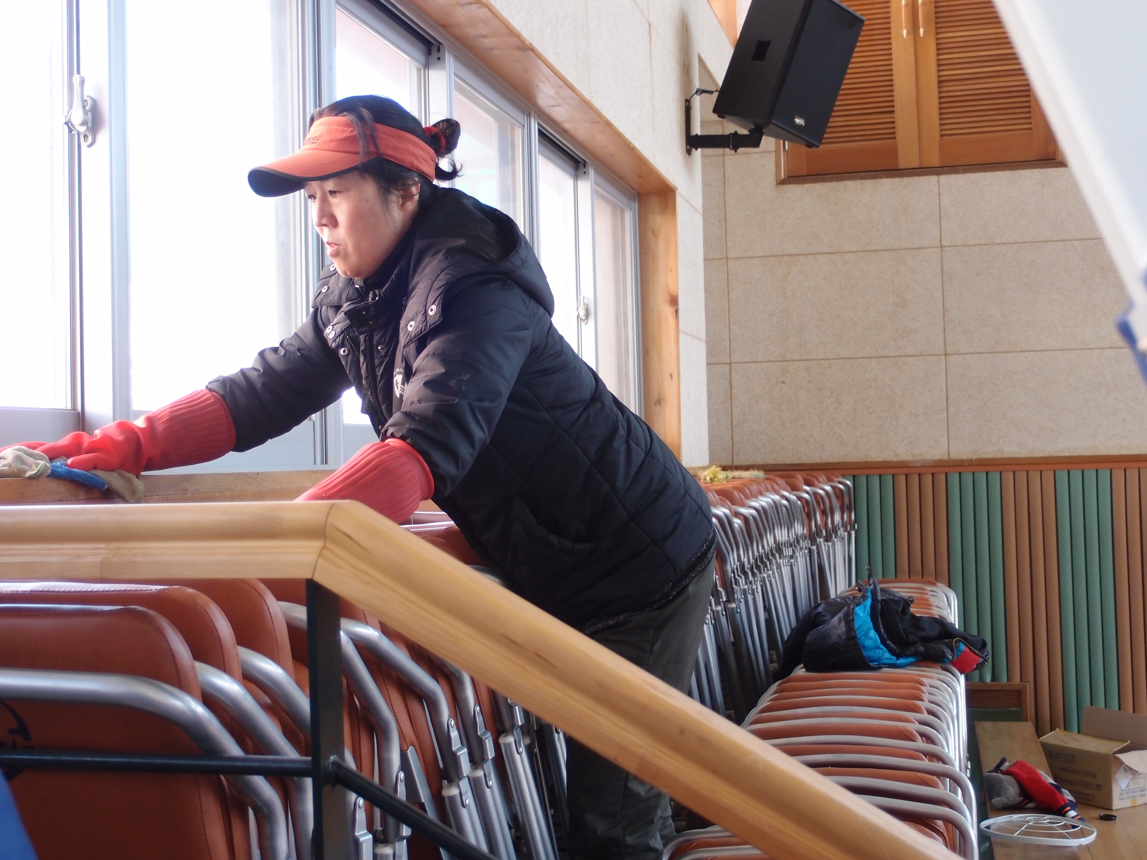 작은인원이 움직이는 걸레가되어 체육관바닥과 스텐드와 창틀을.....쓱쓱싹싹