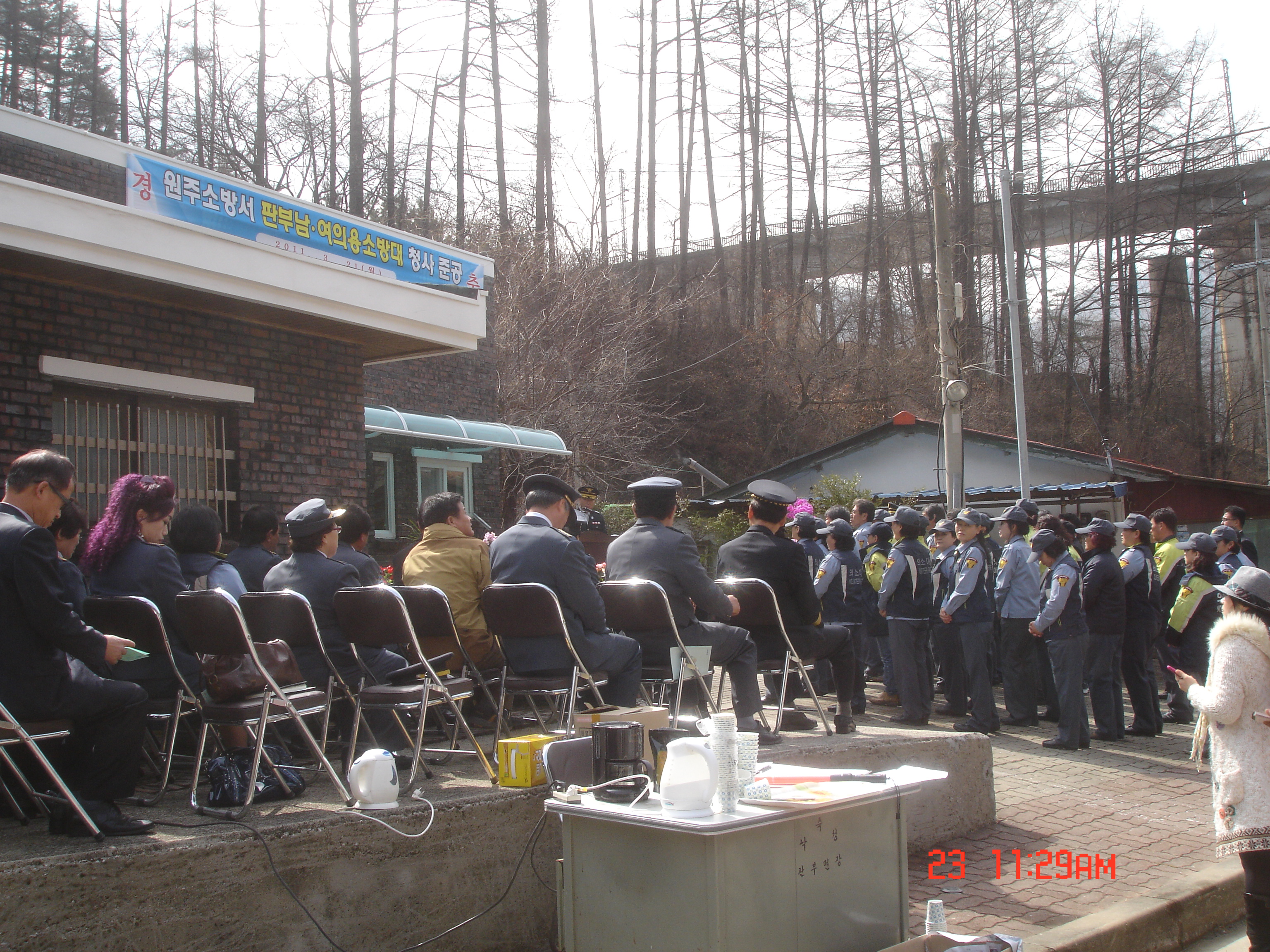 2011년 3월 21일 원주소방서 박창진 서장님 구자열 도의원님 과 각 의소대 대장님 및 판부의소대 (대장 박영길) (여성대 대장 노순일) 남여대원이 참석한 가운테 판부남여의소대 청사 준공식이 있어씁니다.