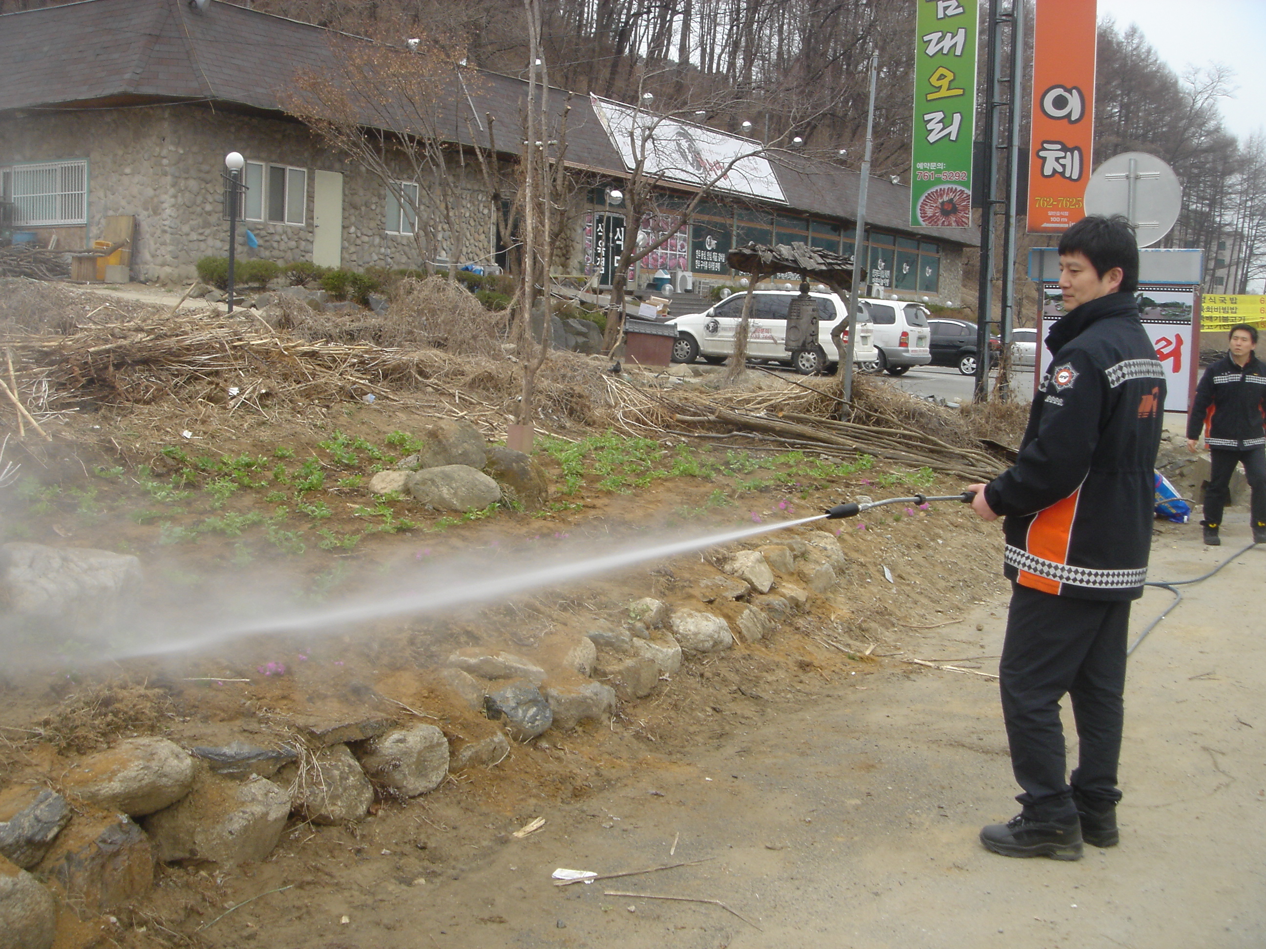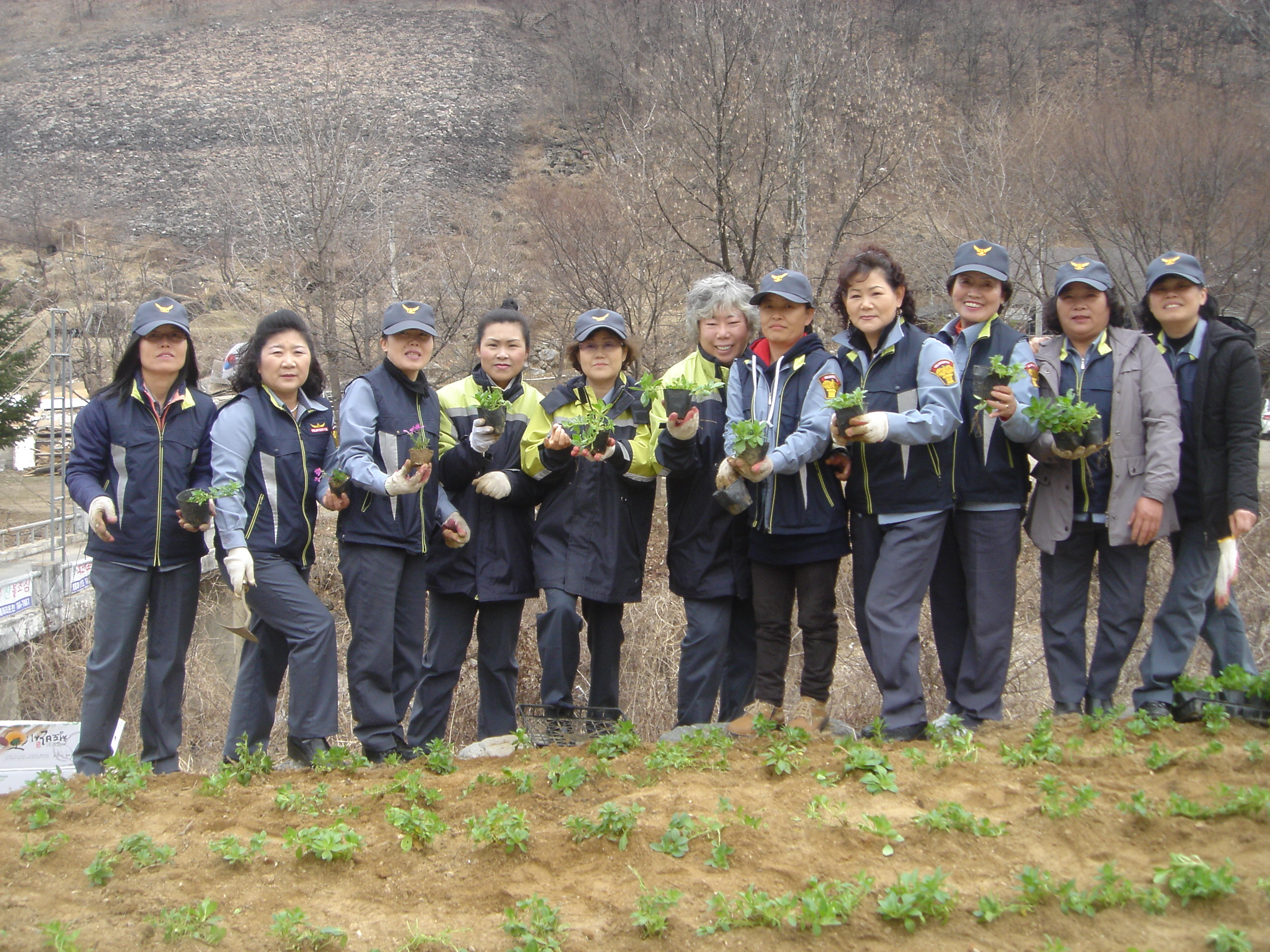 남.여 의소대가 합심하여 돌을 캐내고 거름을 뿌리고 ~~그리고 잘 자라라고 단구센테에서 물지원 까지 도와주셨 습니다.