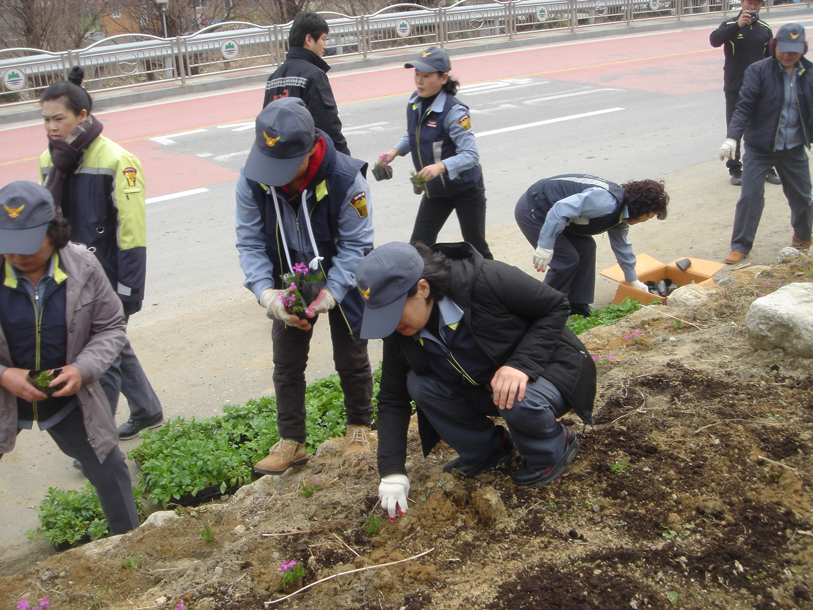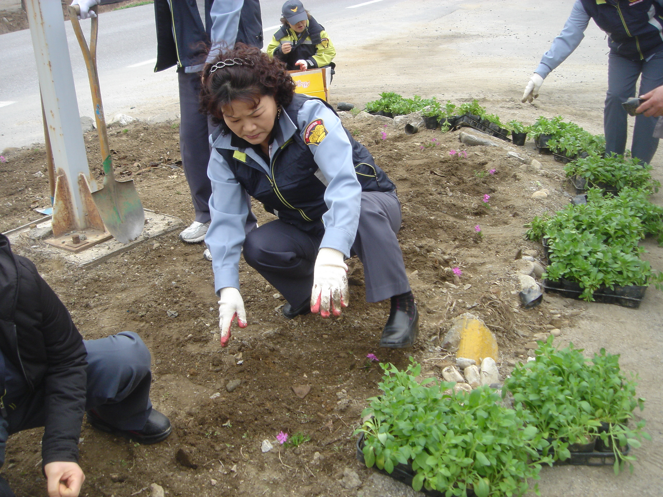 판부 남. 여(대장 노순일외 15명) 의소대는 2일 오후2시~~금대리 도로변 및 버스정류장 화단에 예쁜 꽃을 심었습니다.