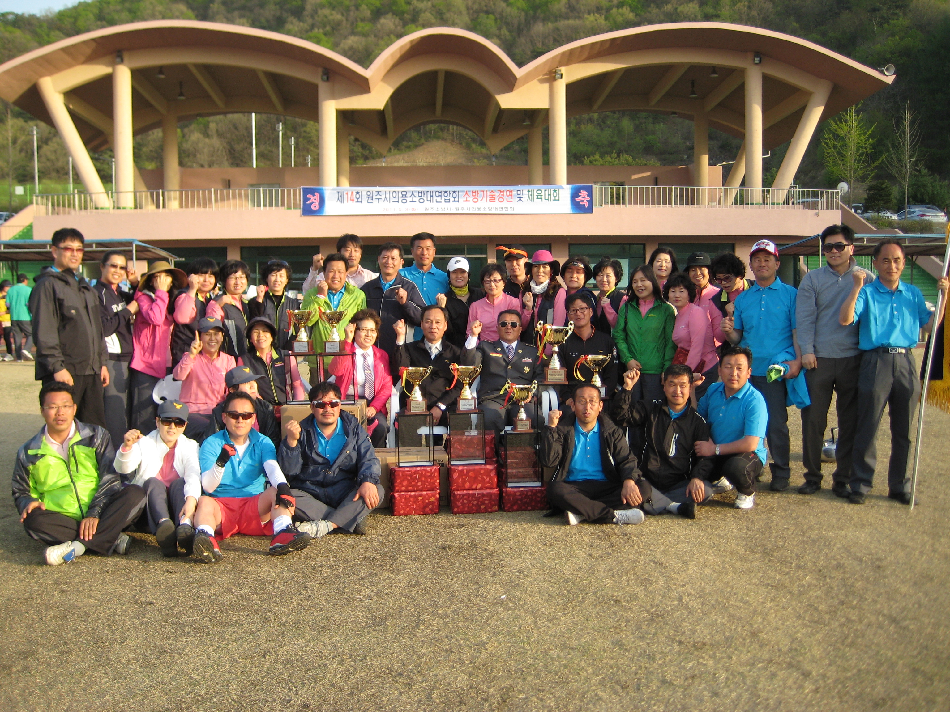 원주의용소방대(대장 조성일)는 대원 46명이 참가하여 5월3일 원주양궁장에서 실시한 제14회 원주시의용소방대연합회 소방기술경연 및 체육대회에 참가하여 족구:1위,호스전개후달리기:2위,계주1위,줄다리기:1위를 하여 종합우승을 차지했습니다.