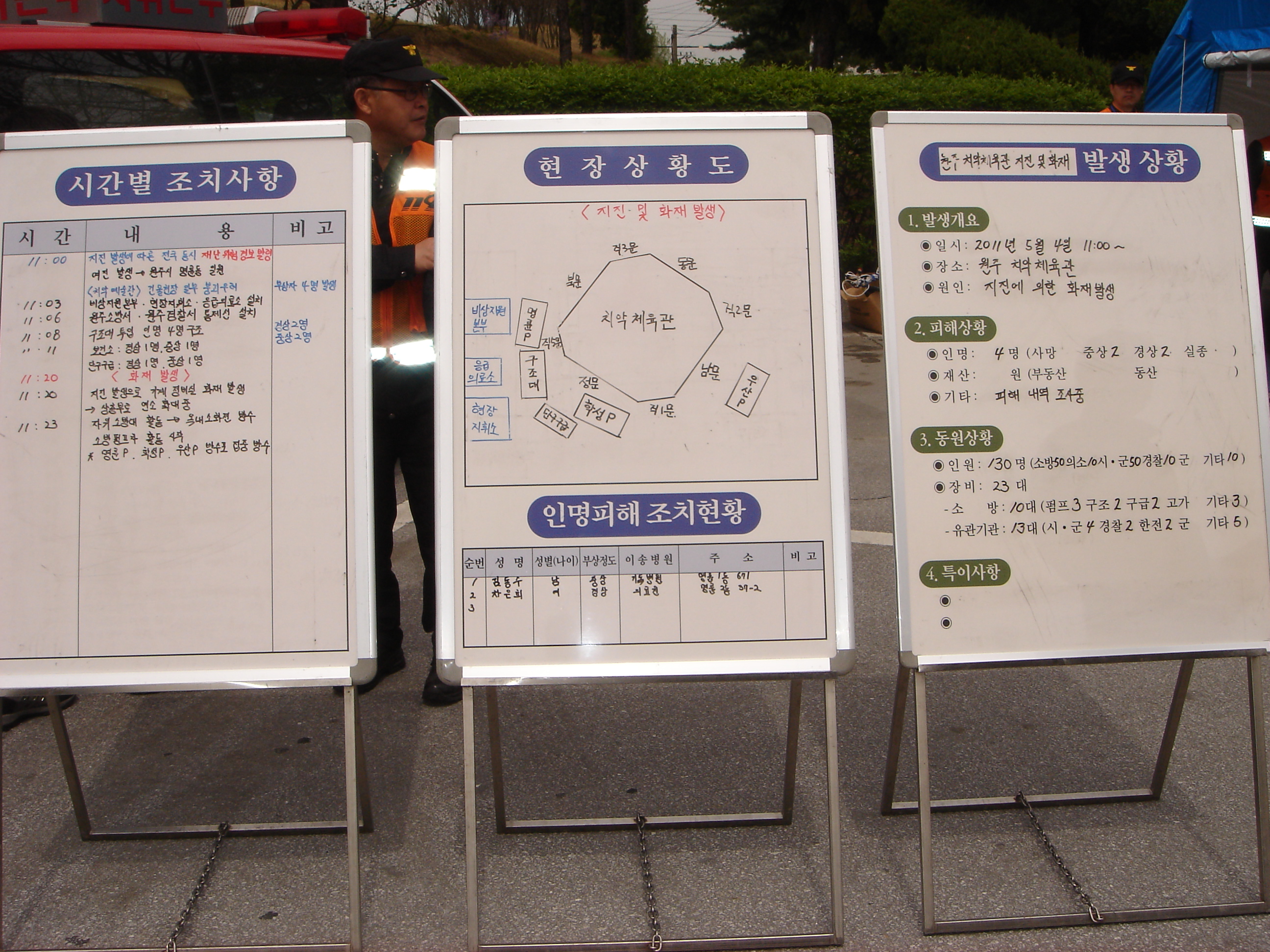 원주의용소방대(대장 조성일)는 5월4일 지진해일 대비 주민 대피 및 차량통제 훈련을 치악체육관에서 원주시,원주소방서등 여러 단체와 주민대피,차량통제를 대원 5명이 참가하여 10:00-12:00까지 실시했습니다