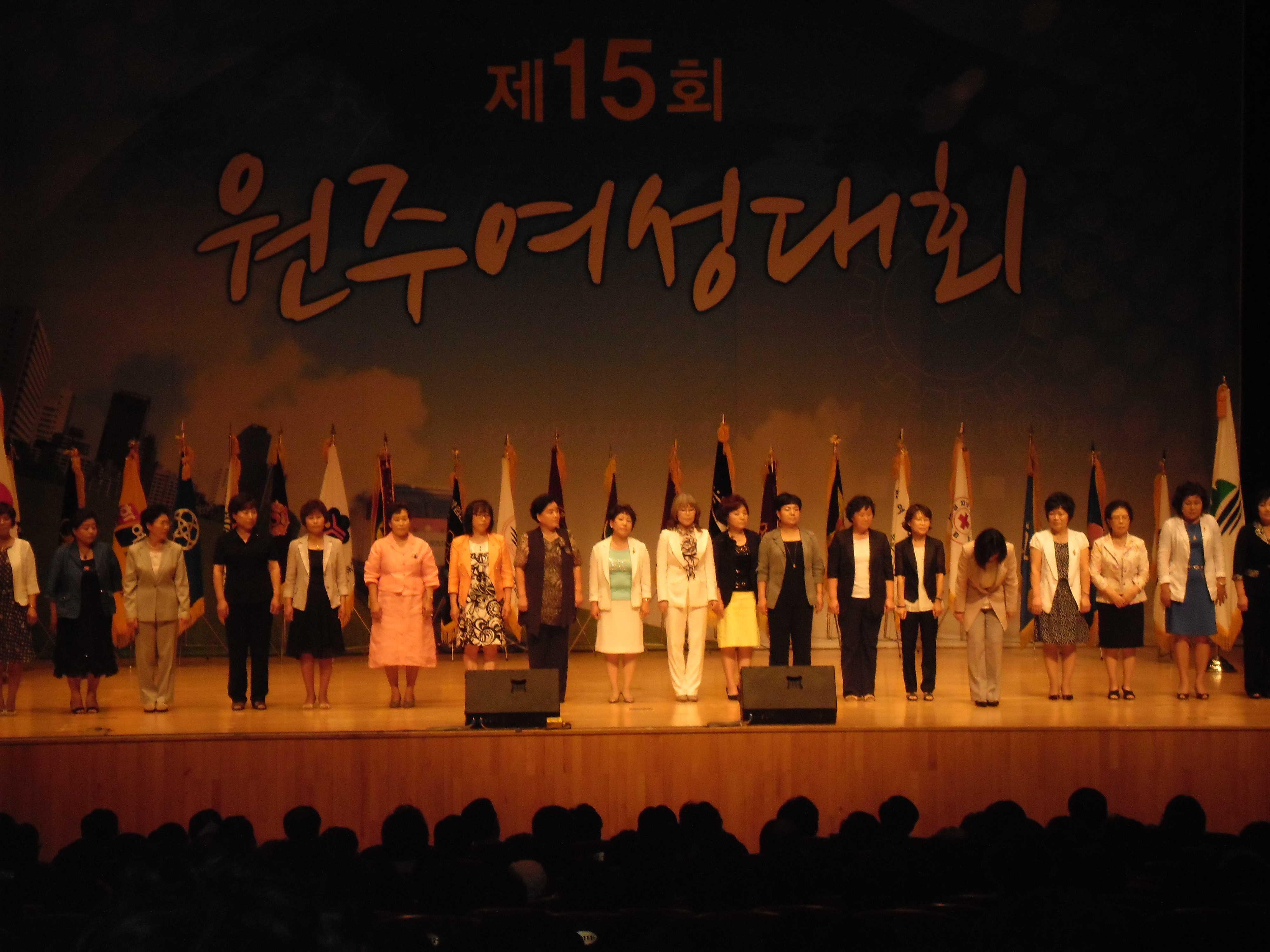 원주시여성단체협의회가 주관한 이번 대회는 백운아트홀 900석이 넘는 자리가 모자랄 정도로 열기가 아주 뜨거웠습니다.대회를 준비하시느라 고생하신 단체장님들 노고에 감사드립니다. 원주시 여성의용소방대 회장님이신 오 오석 대장님 고생많으셨습니다.