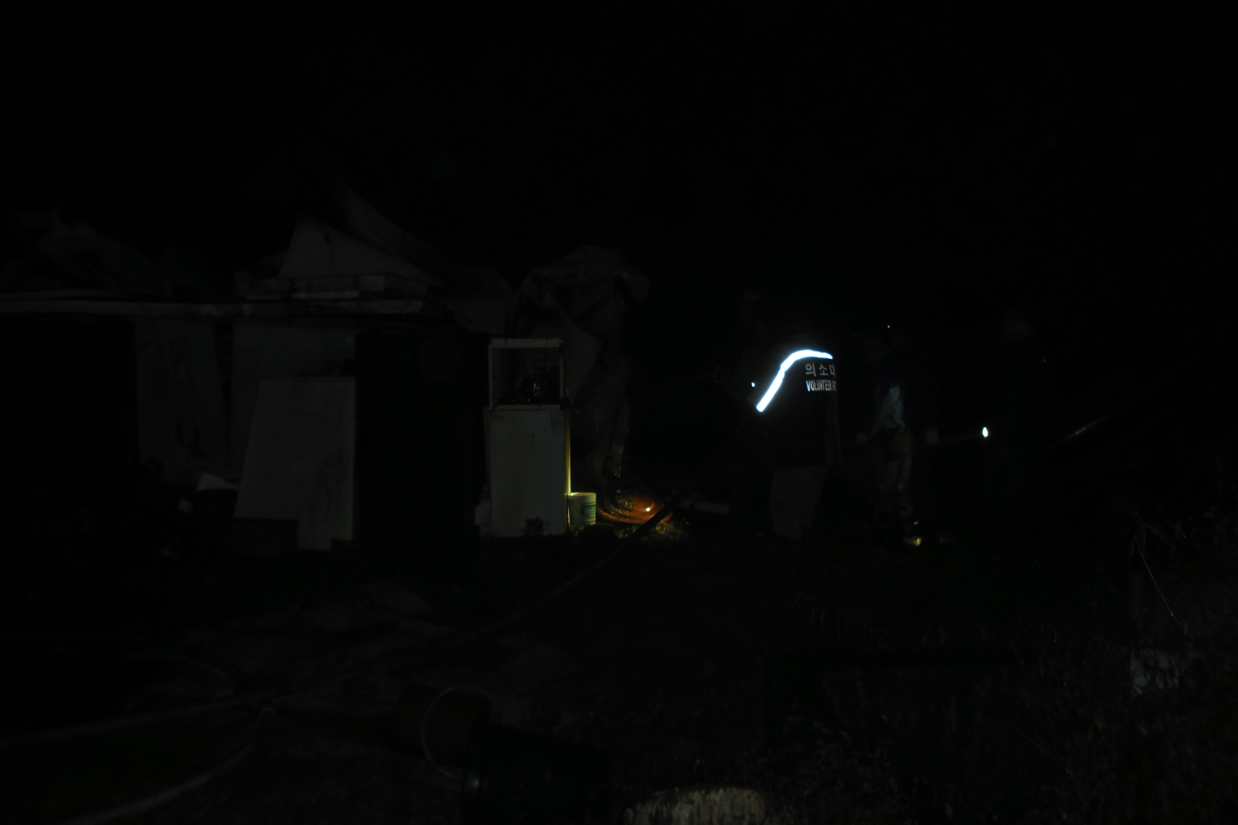 비가 억수같이 ?아 지는데 주택에 불이 났다