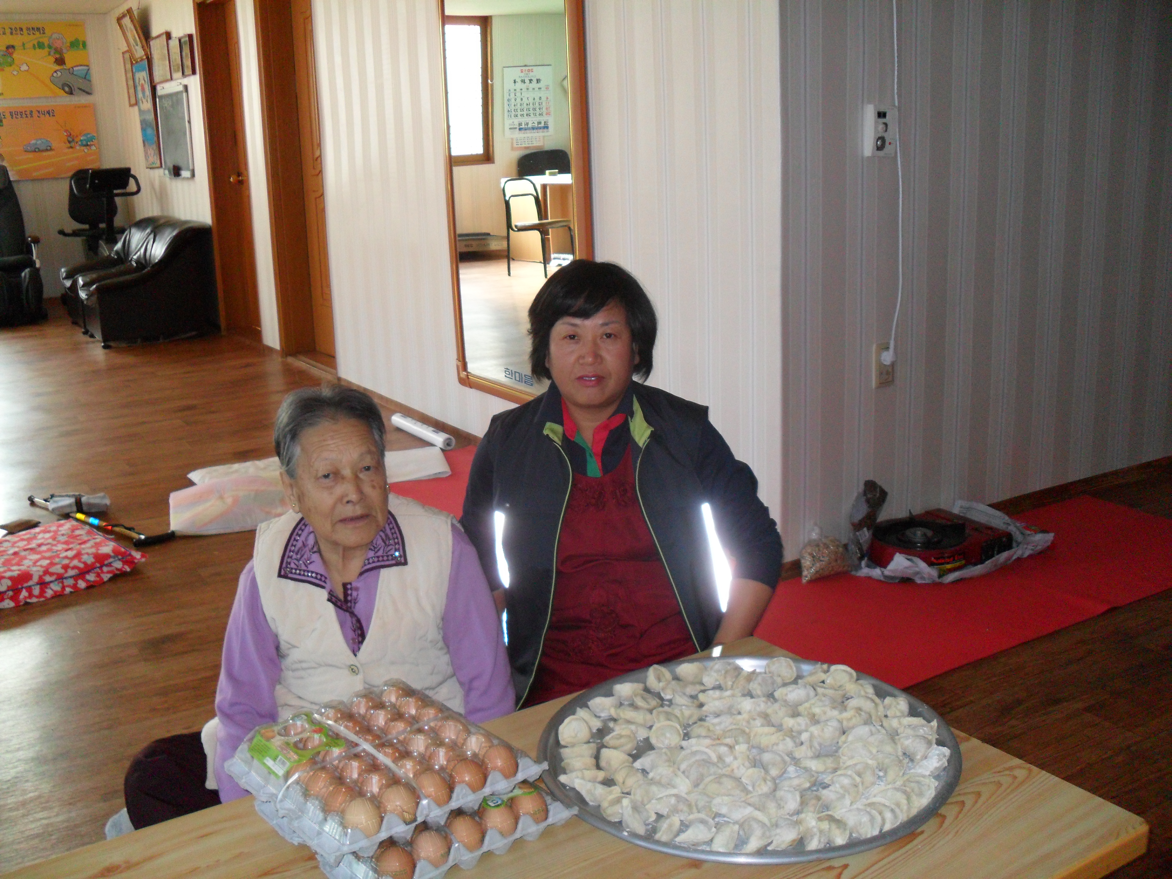 교육을 마친 후 대원들이 만두를 만들어서 홀로 사시는 할머님과 신리 1리 경노당에