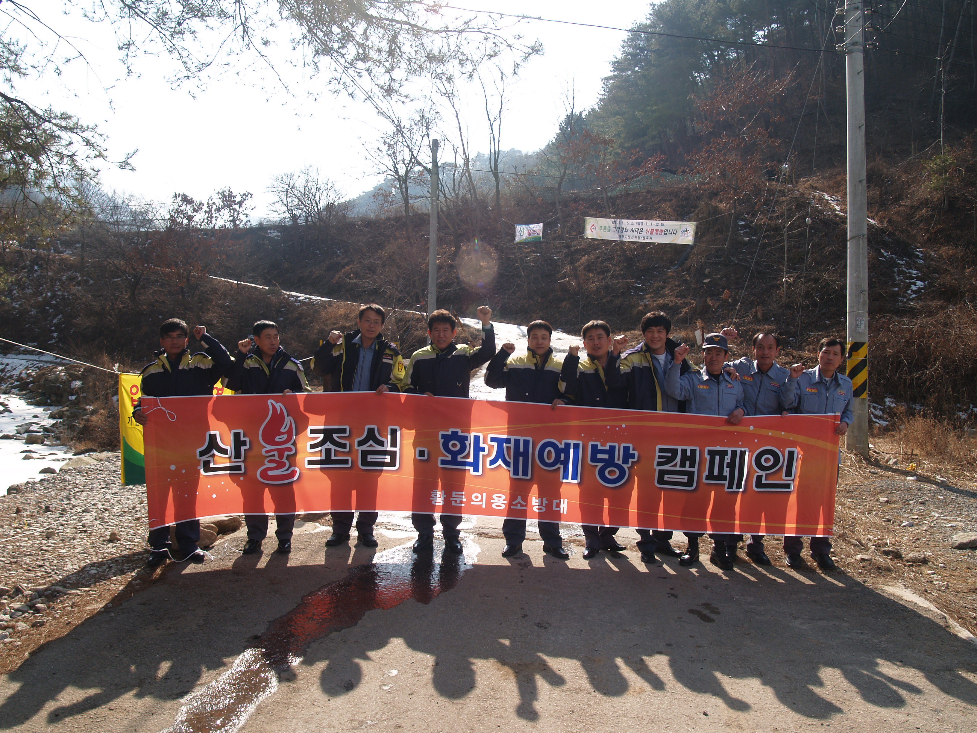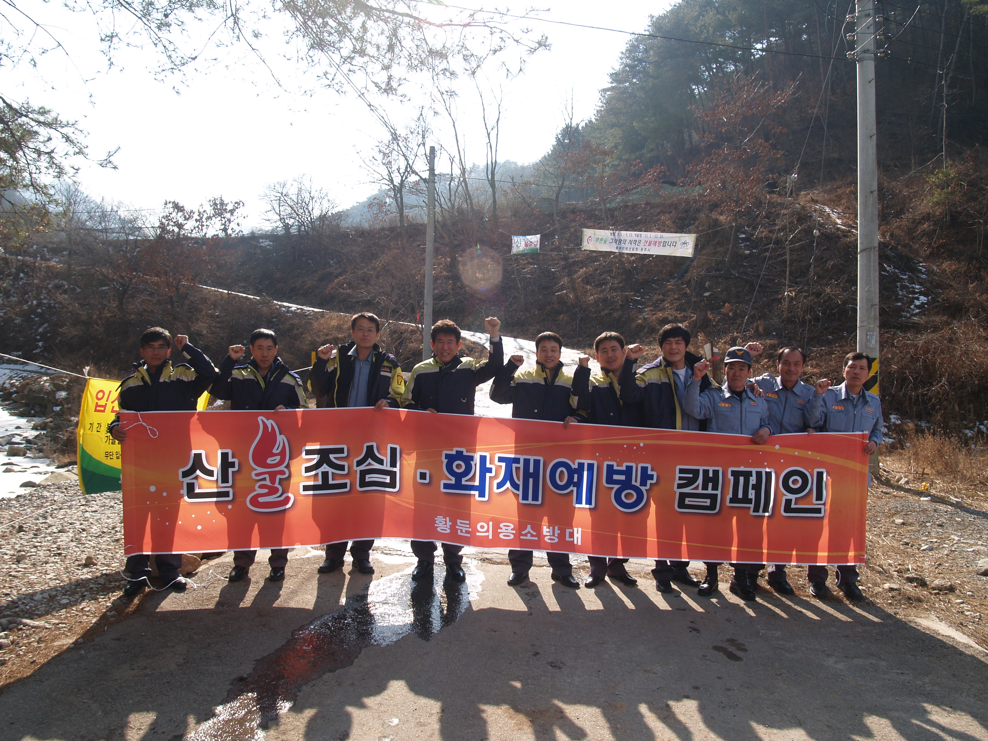 황둔의소대 대장김재희는 2울 25일 대원 9명과 함께 오후 2시에 감악산등 등산로 일대에서 겨울철 산불예방을 위한 홍보를 하였다. 조금의 방심은 곧 화재로 이어진다는 마음으로 더욱 우리의 자연을 지켜야겠다고 의기투합하고 오후4시경에 해산하였다. 황둔의소대 홧팅!!!!