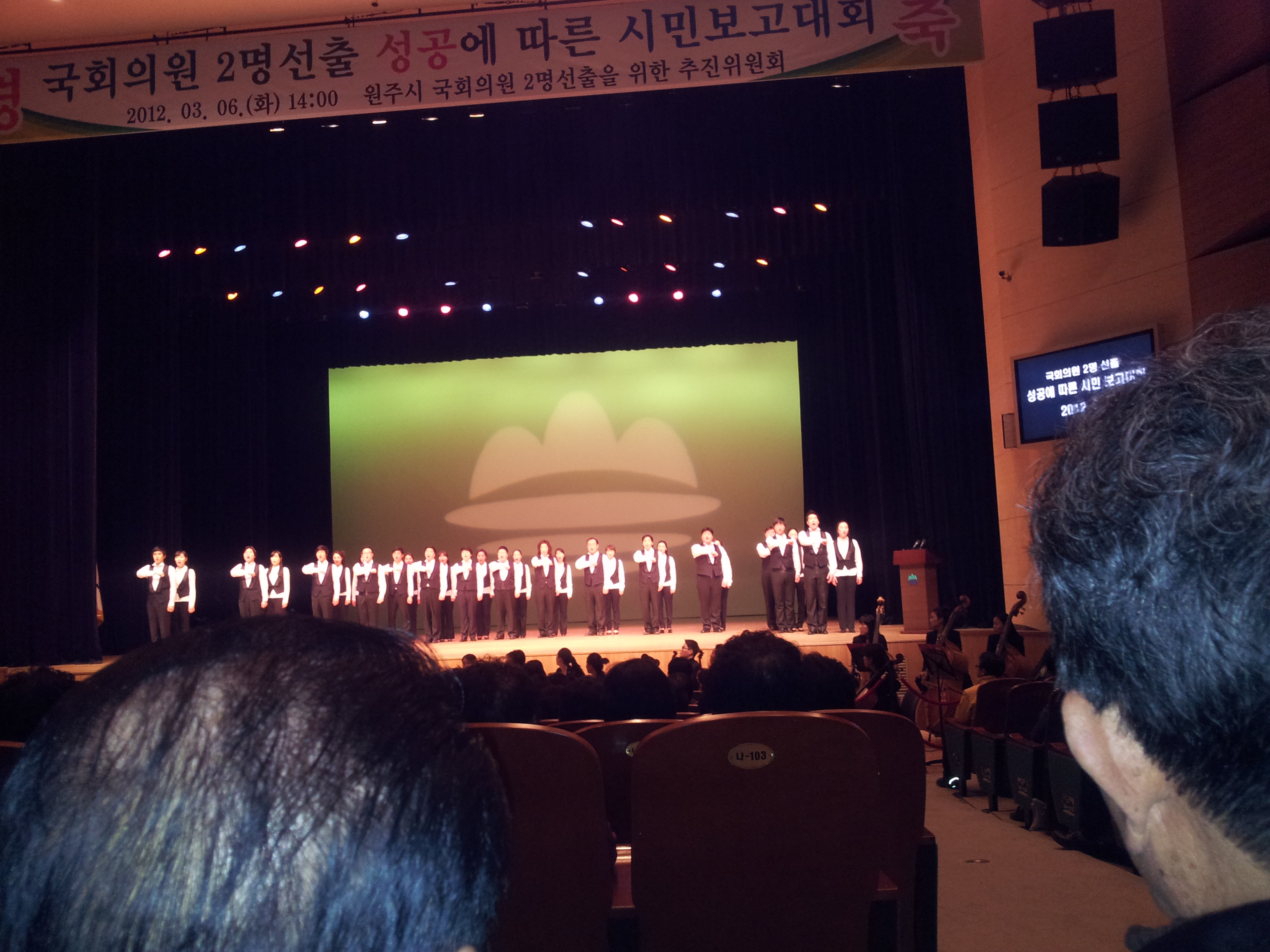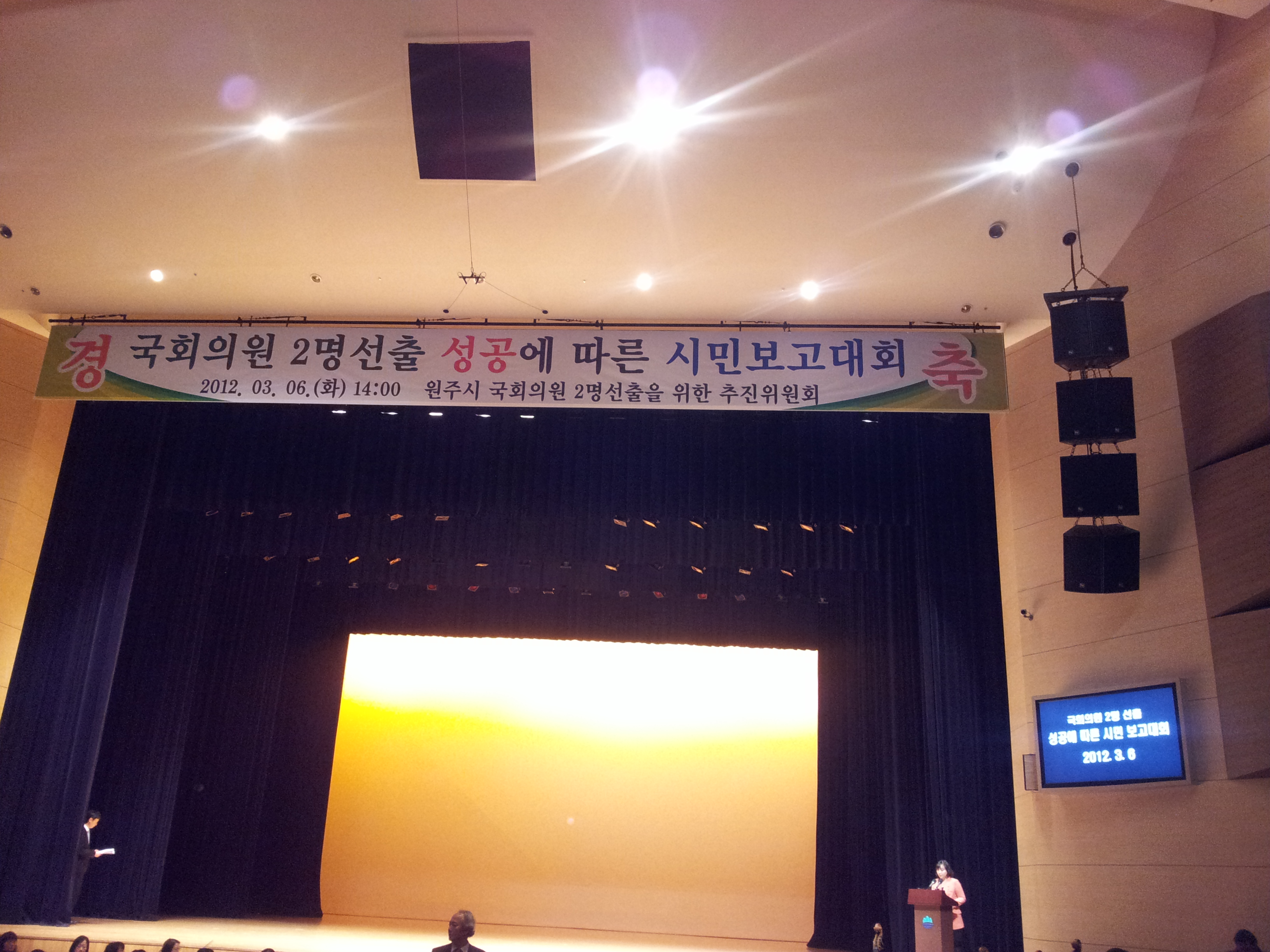 국회의원 2명 선출을 위한 추진위원회에서 주최한 오늘 대회는 원주 시민으로서 자부심을 가질수 있는 날이었습니다. 지은희 위원님에 경과보고를 들으면서 그동안 추진위원들의 많은 노고를 알수 있었습니다.