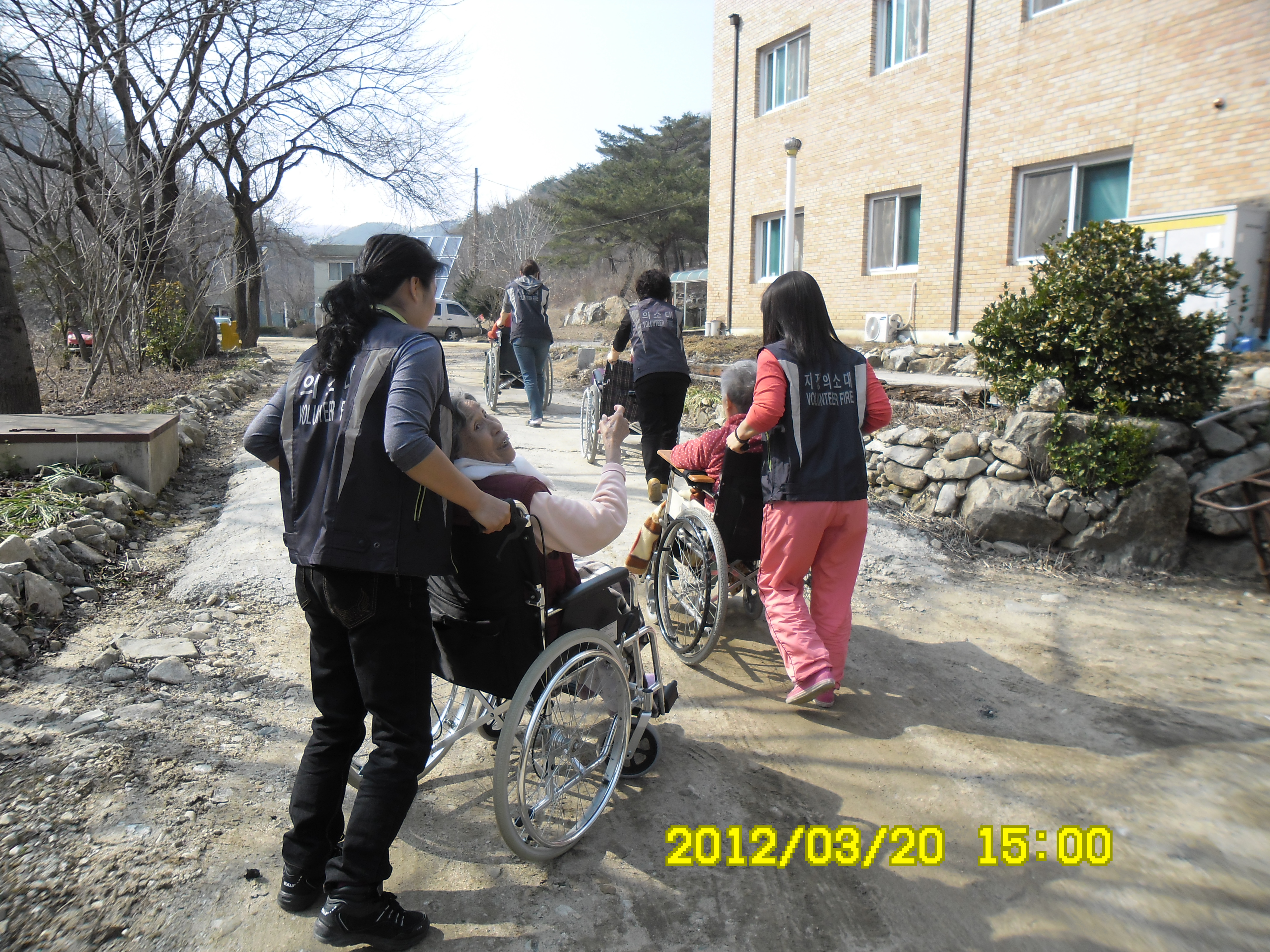 2012년 3얼 28일지정여의소대(대장 박인수)총무부 대원6명이 평심원봉사를 다녀왔습니다.두팀으로 나누워 한팀은 청소를 하시고 한팀은 할머니 할아버지분들을 모시고 겨울철에는 자주못하시는 야외활동을 따뜻한 봄이 찾아와 야외활동도 하시고 즐거운 하루를 보내셨습니다.