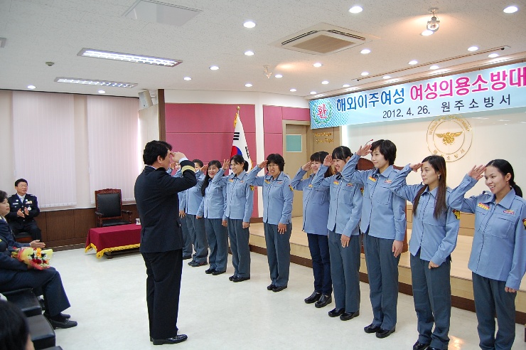 4월26일 원주소방서(서장 김시균) 대회의실에서 해외이주여성 입대식을 치뤘습니다.