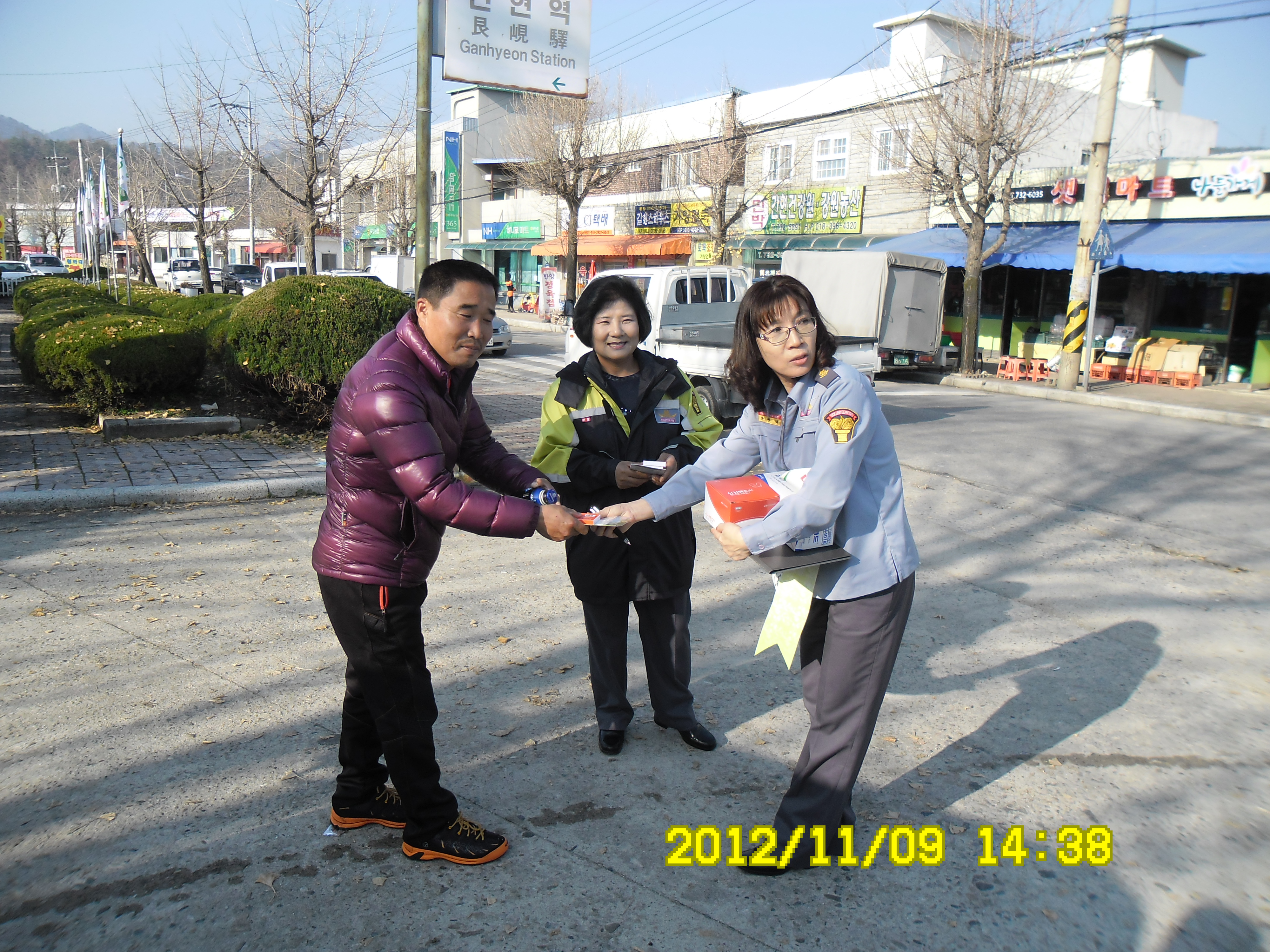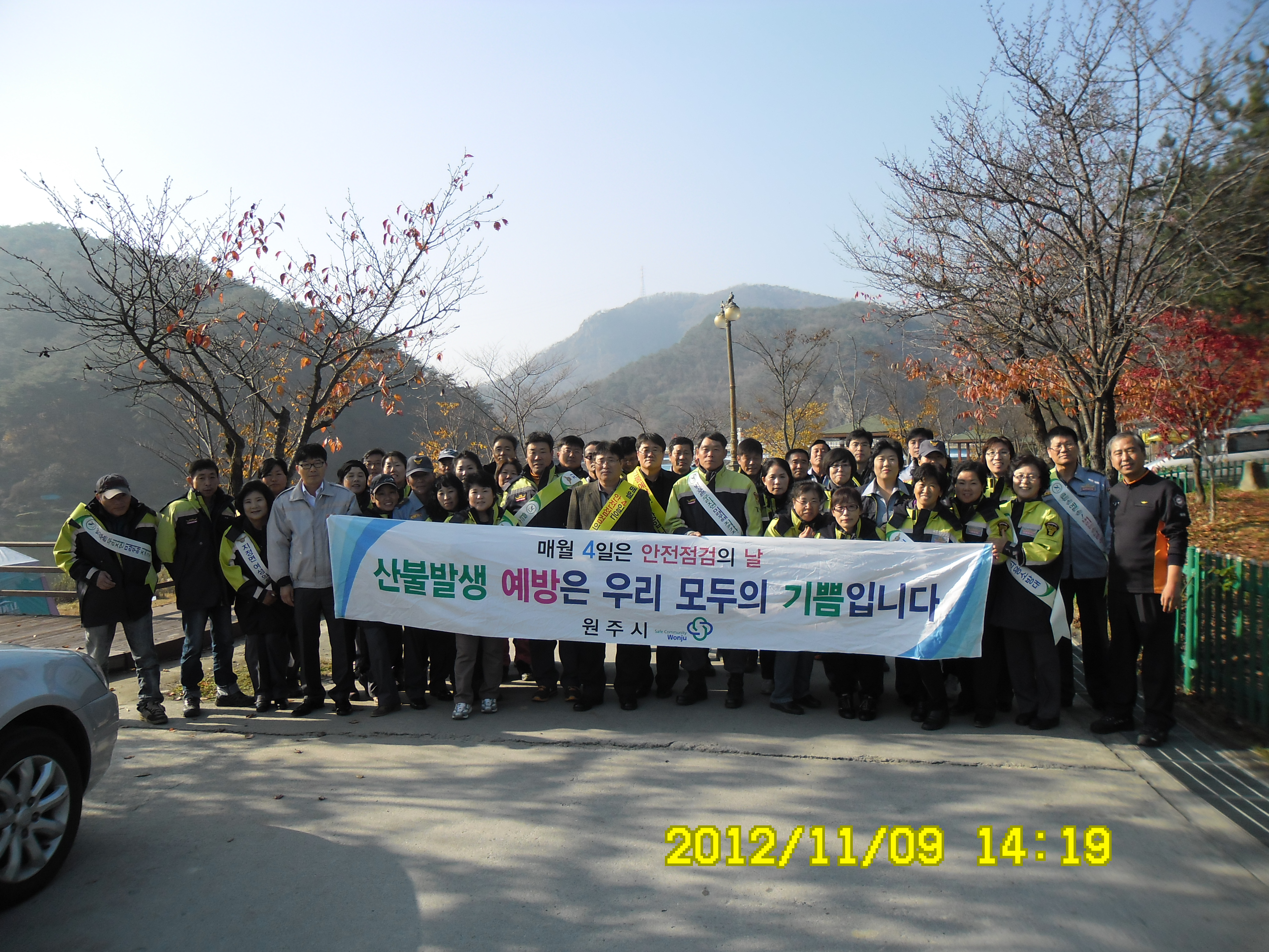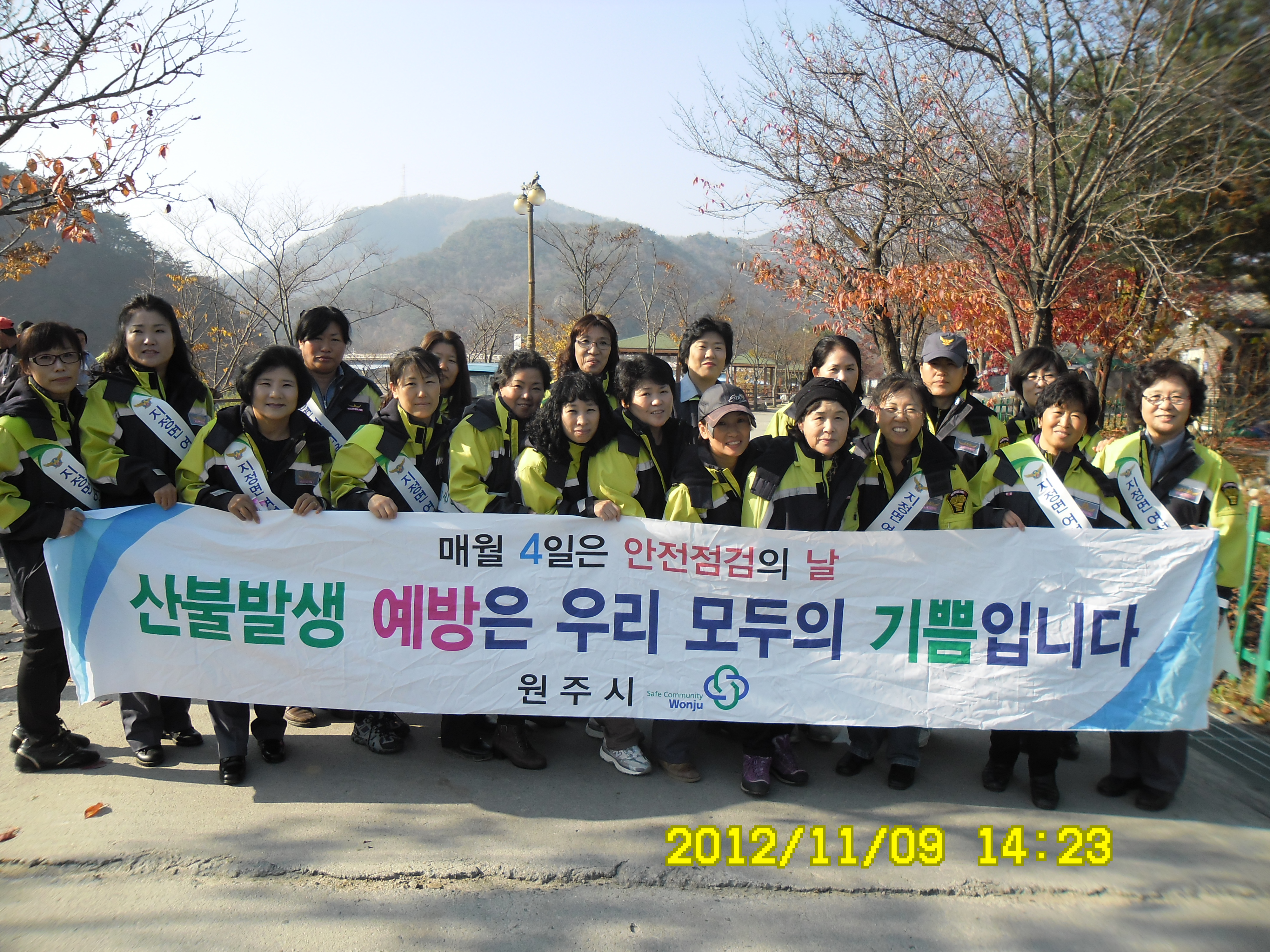 2012년 11월9일 소방의날에 지정남여의용소방대 대장 한현수외22명과 대장 박인수외24명은 간현관광지에서 그리고 간현역 앞에서 산불예방캠페인을 하였습니다.