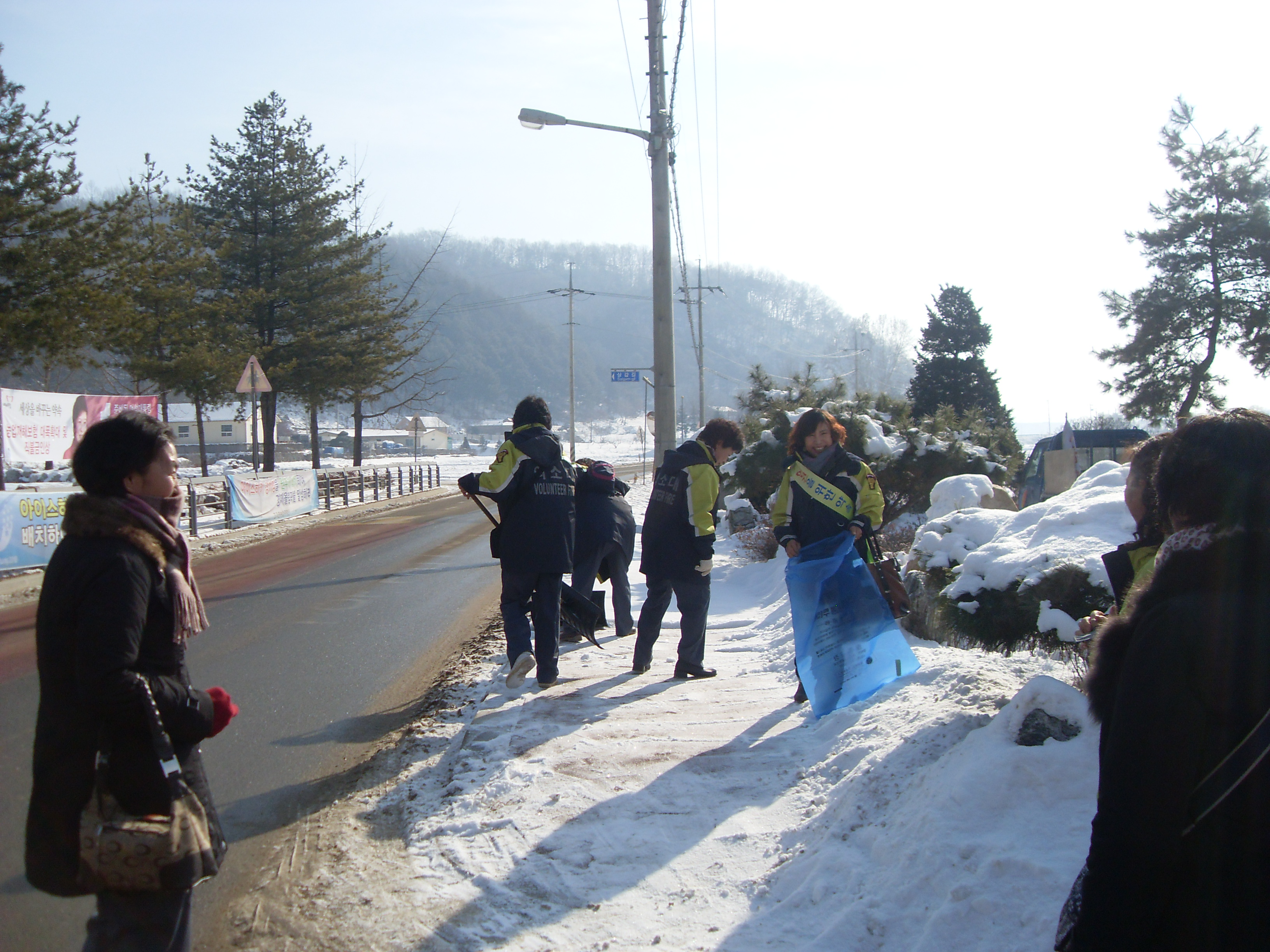 교육이 끝나고 폭설로 미끄러워 불편한 도로가에 눈을 치웠습니다