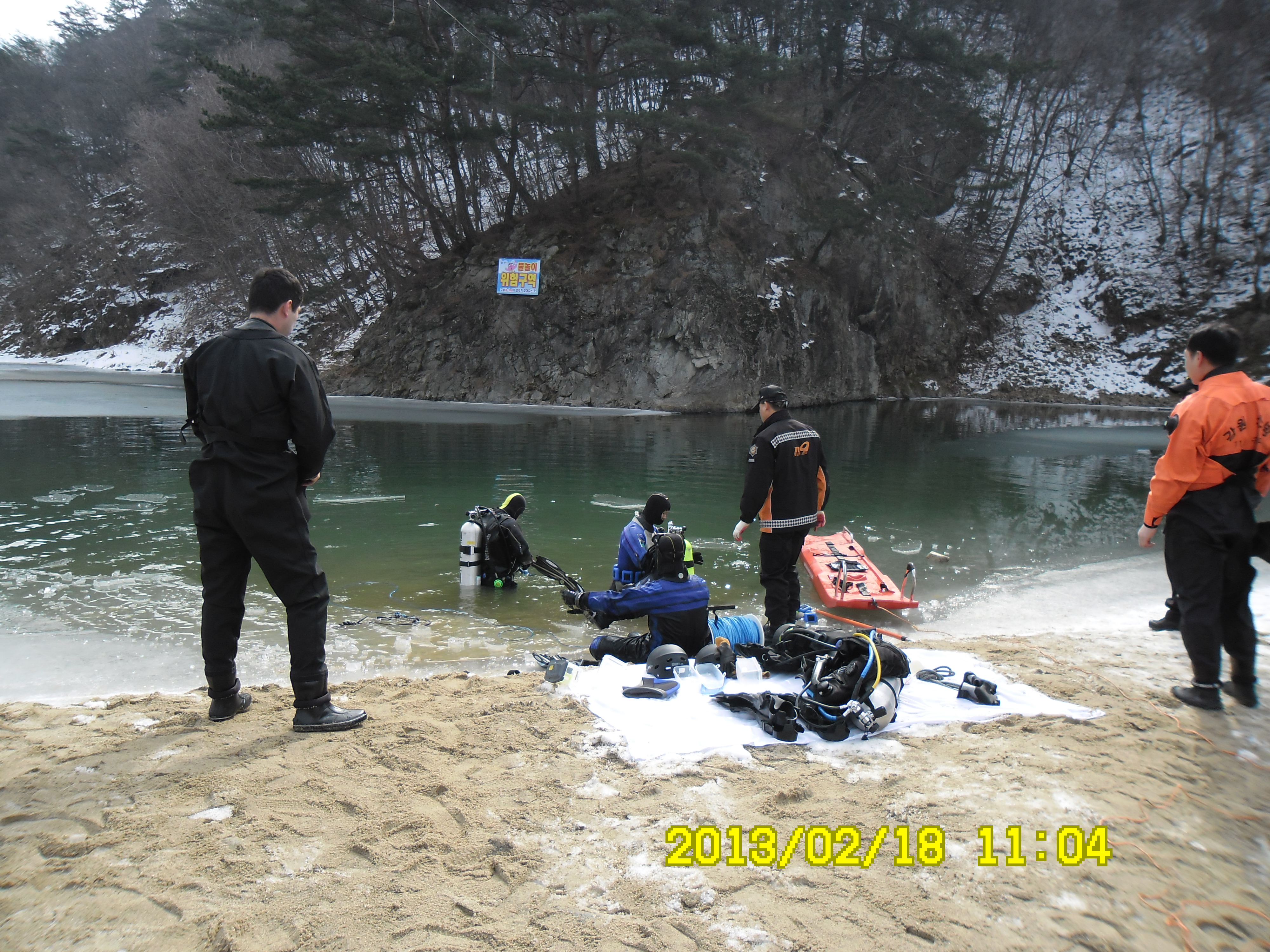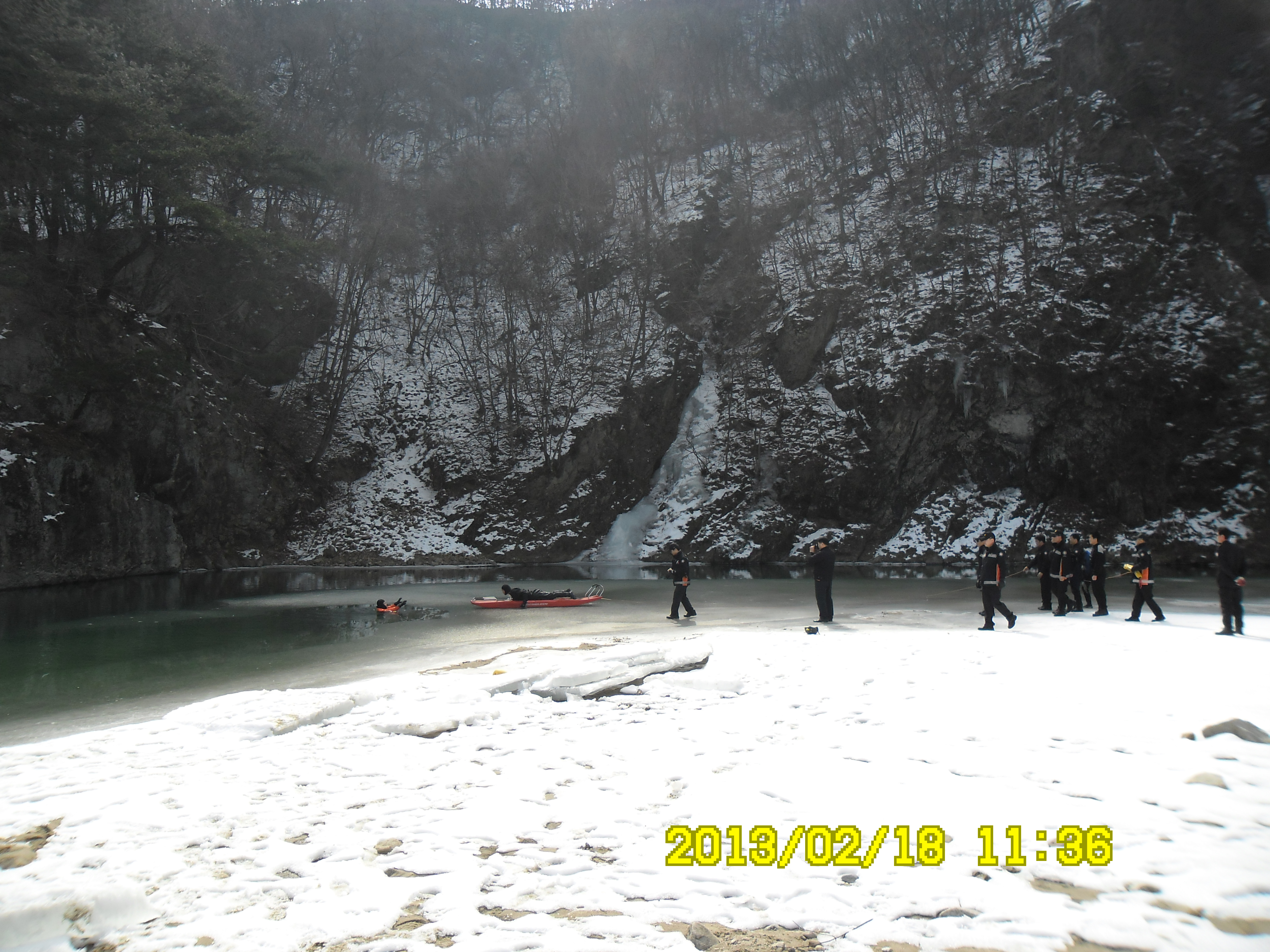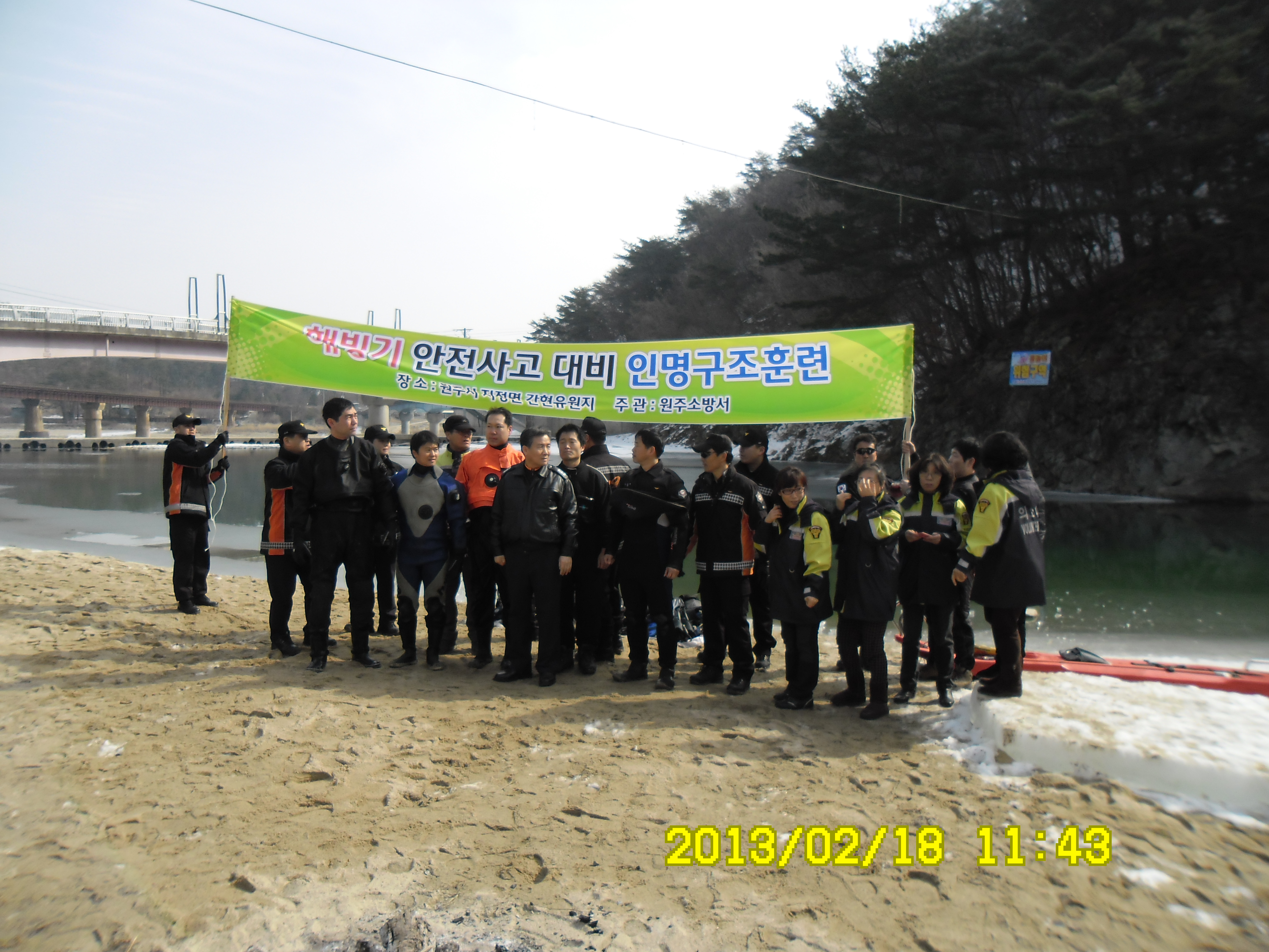 2013년 2월18일 10시에 원주소방서 소방관들이 나와서 해빙기 안전사고대비 인명구조훈련을 간현관광지내 삼산천에서 했습니다. 날씨가 춥지 않아서 강에 얼음이 다 녹아 얼음을 깨고 하는 수고로움을 좀 덜었습니다. 훈련에참가하신 소방관님들 수고 많이 하셨습니다.