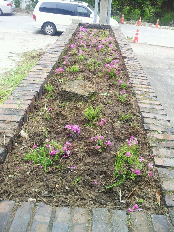 판부여성의용소방대(대장 김명자)에서 금대리 판부의소대 사무실 앞 주변 꽃심기 및 환경정리를 하였습니다