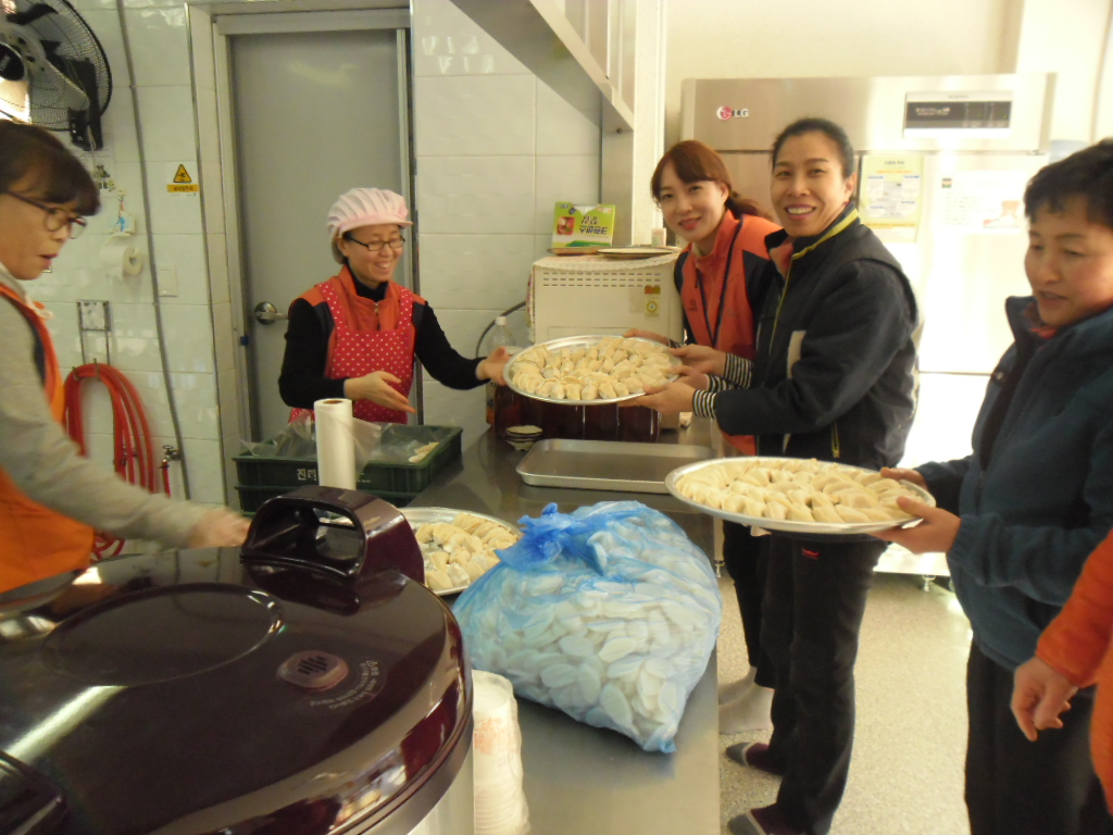 만두를 직접만들어 나누어 드리고 흰떡도 나누어 드리며