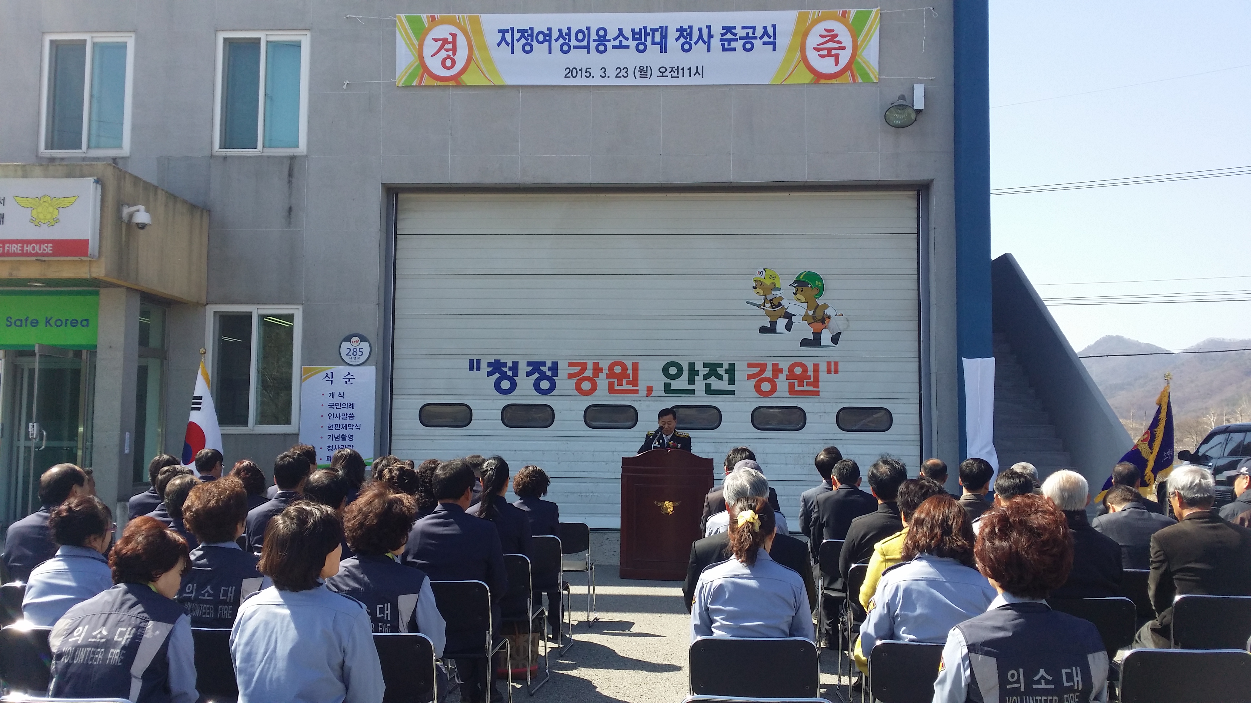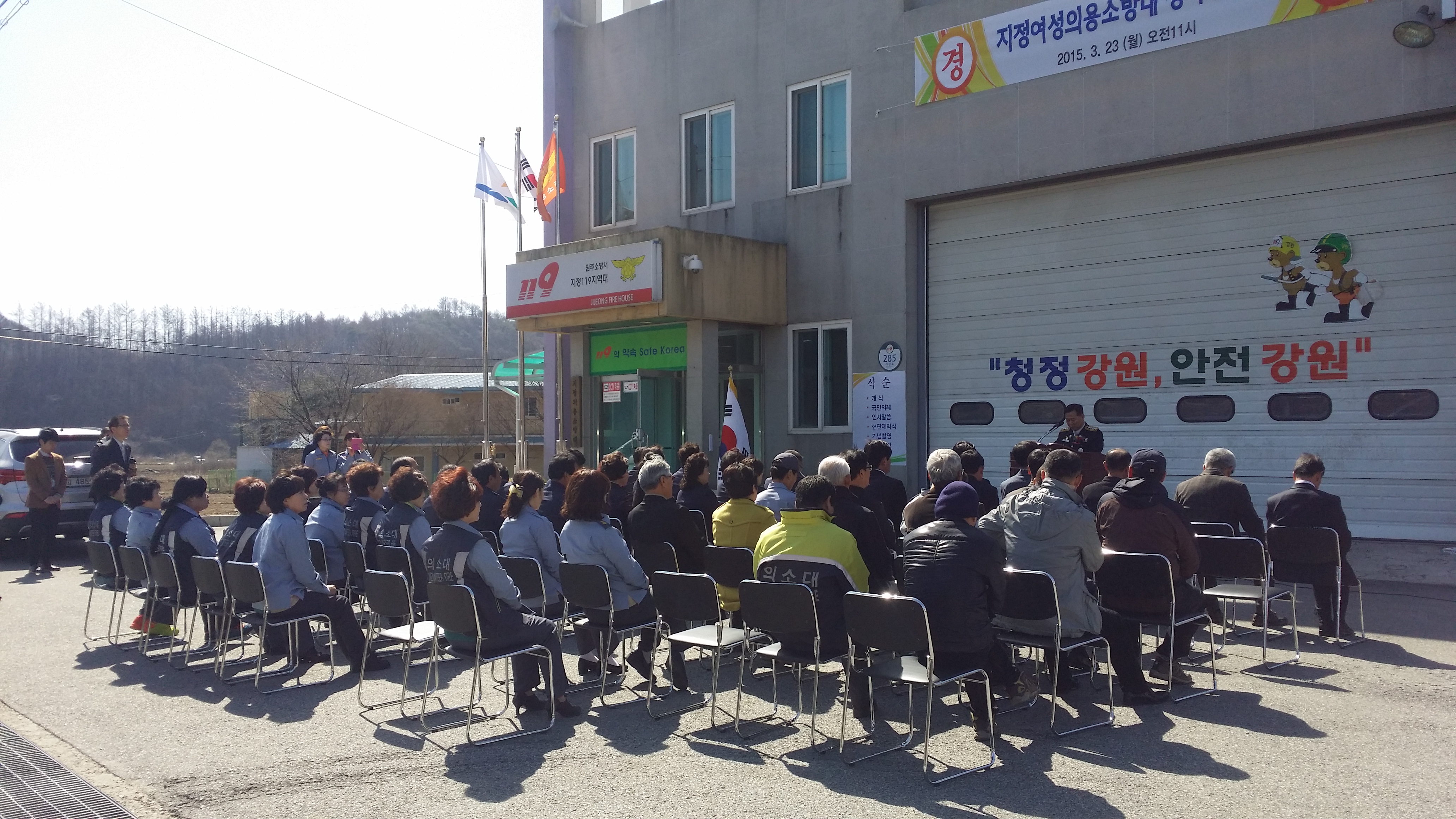 2015년3월23일 지정여성의용소방대는 청사준공식을하였습니다. 김상철원주소방서장님과 원창묵원주시장님께서 준공식장에 오셔서 청사준공을 축하해 주셨습니다.