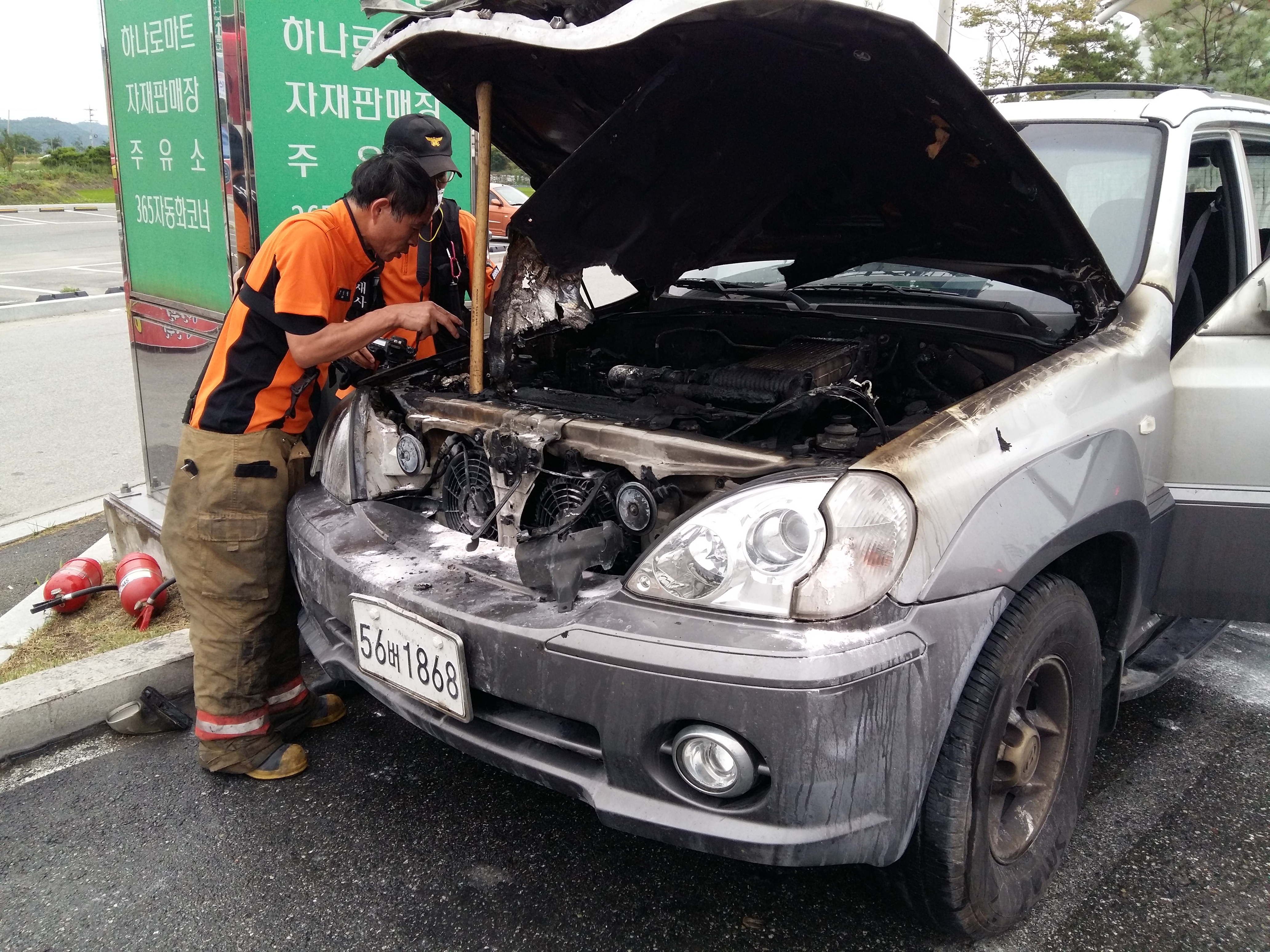 흥업면남원주농협앞 주차장차량화재가발생하였습니다