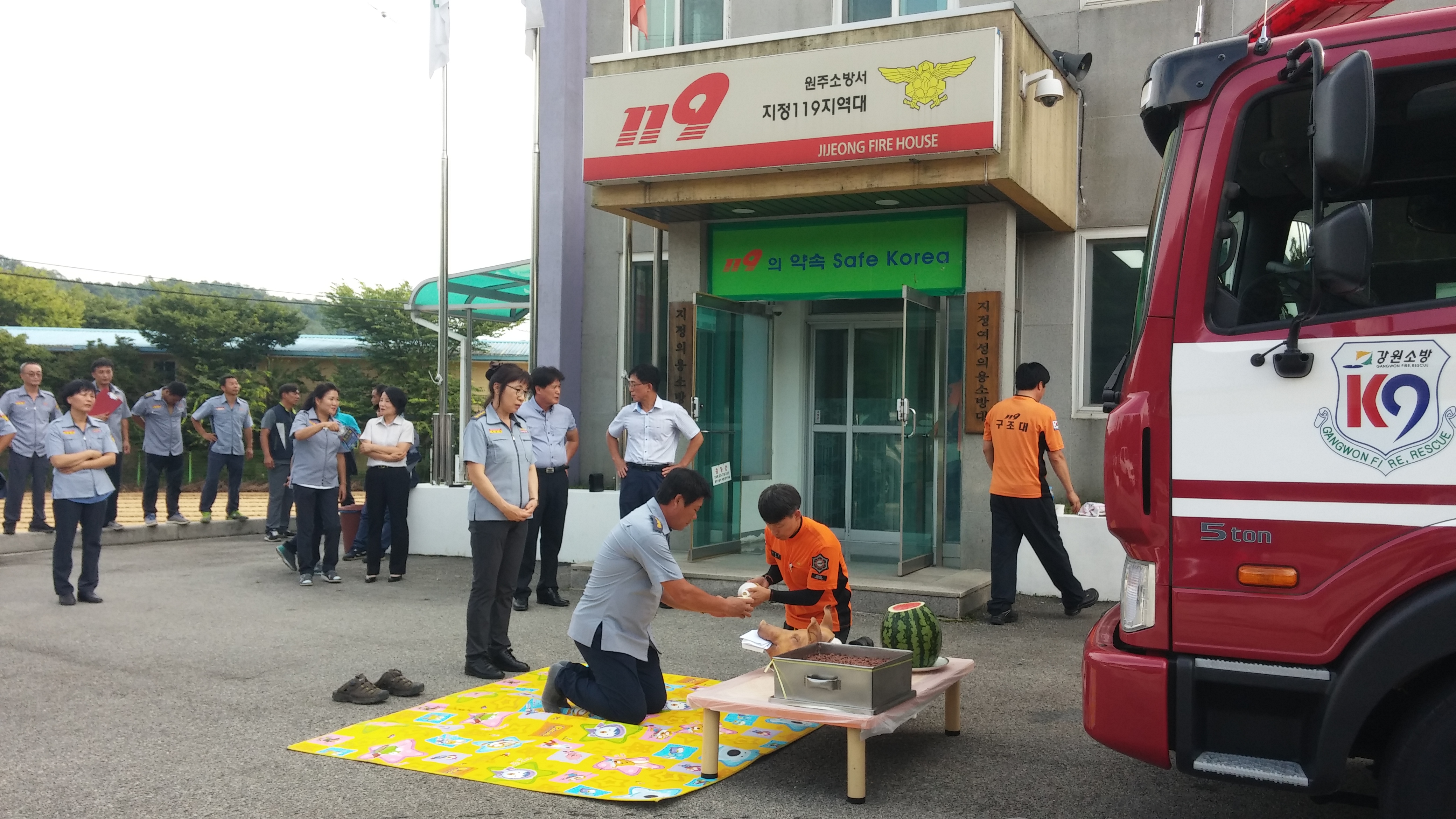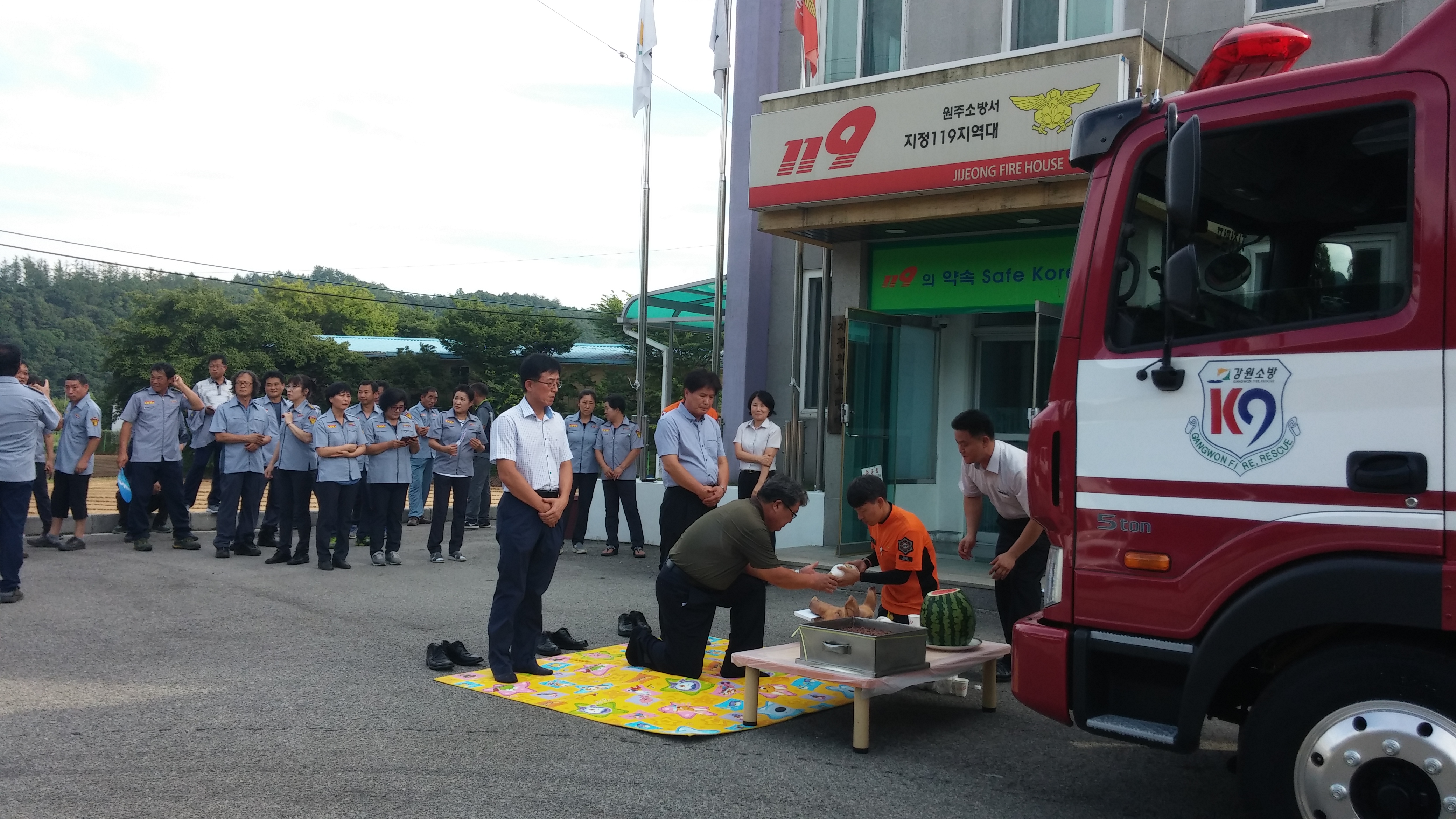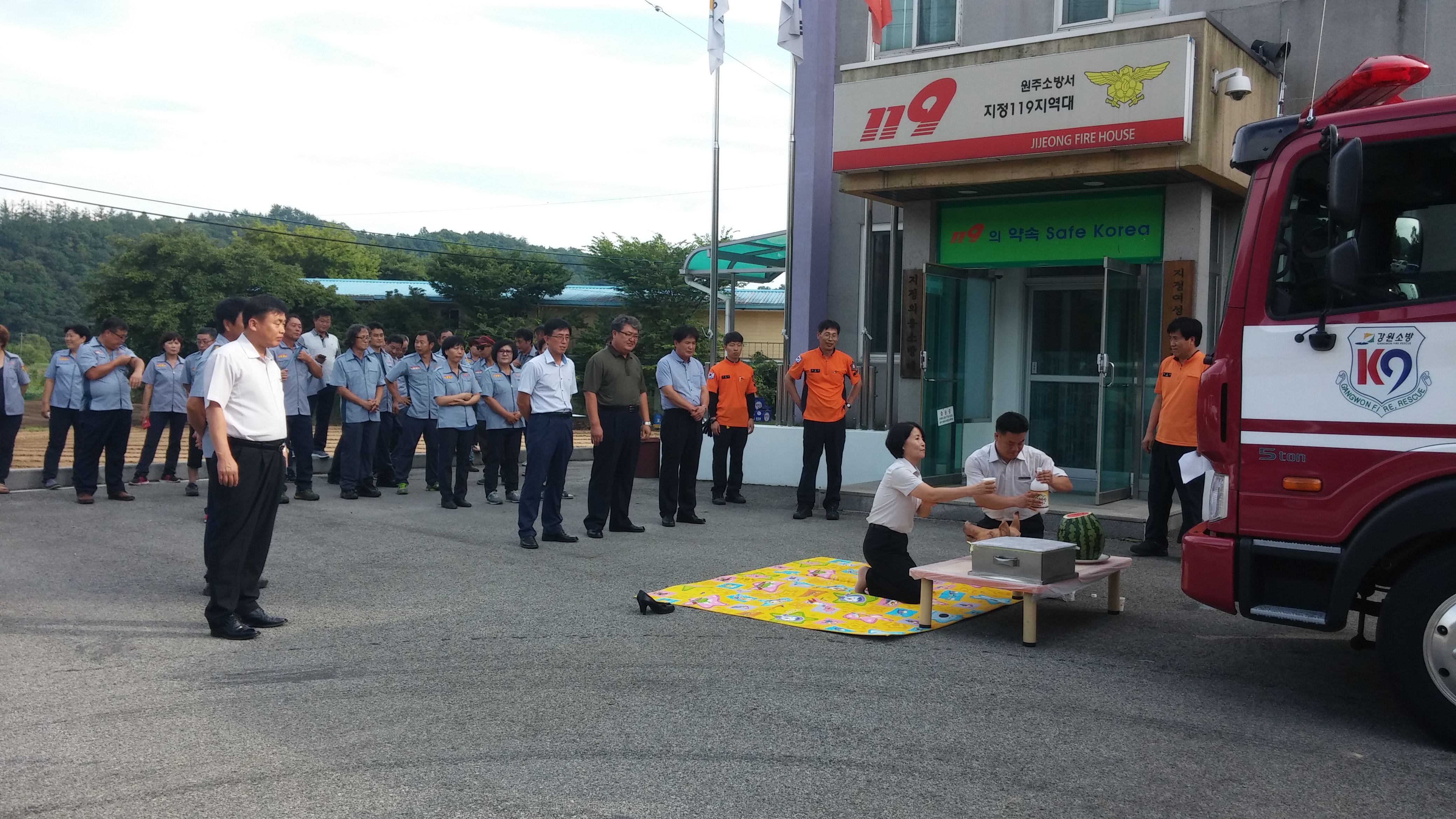 바퀴마다 술을 부어 주셨어요. 물론 우리지역 소방대원분들과 지정 여성,남성의용소방대원분들도