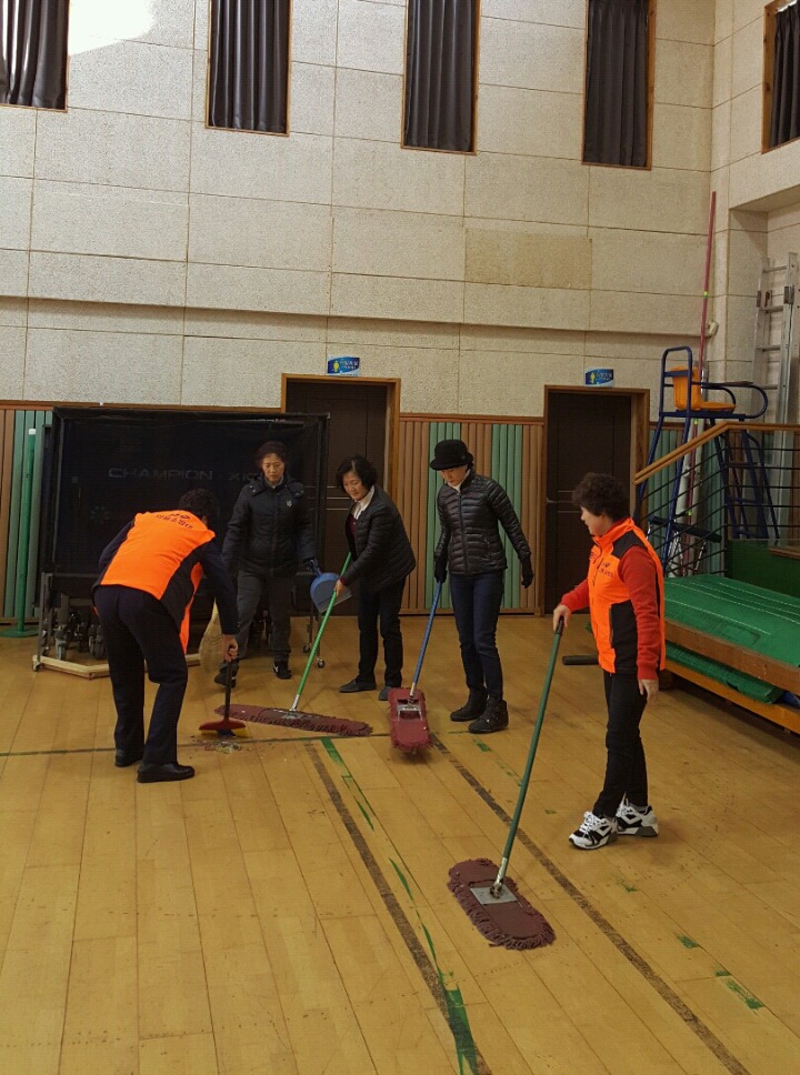 내용: 체육관 실내 바닥청소 및 입구먼지제거 쓰레기분리수거