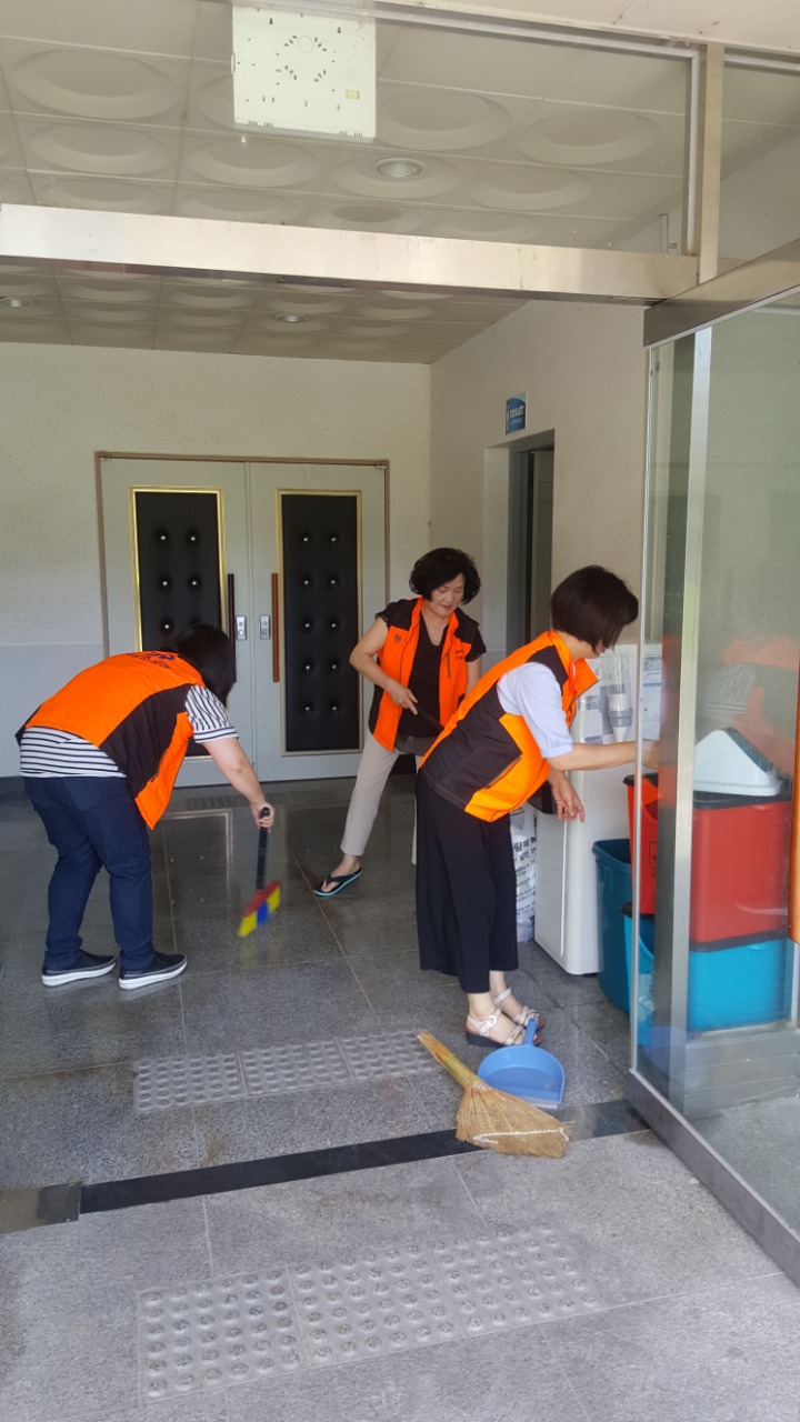 내용: 체육관 실내 바닥청소 및 입구먼지제거 쓰레기분리수거