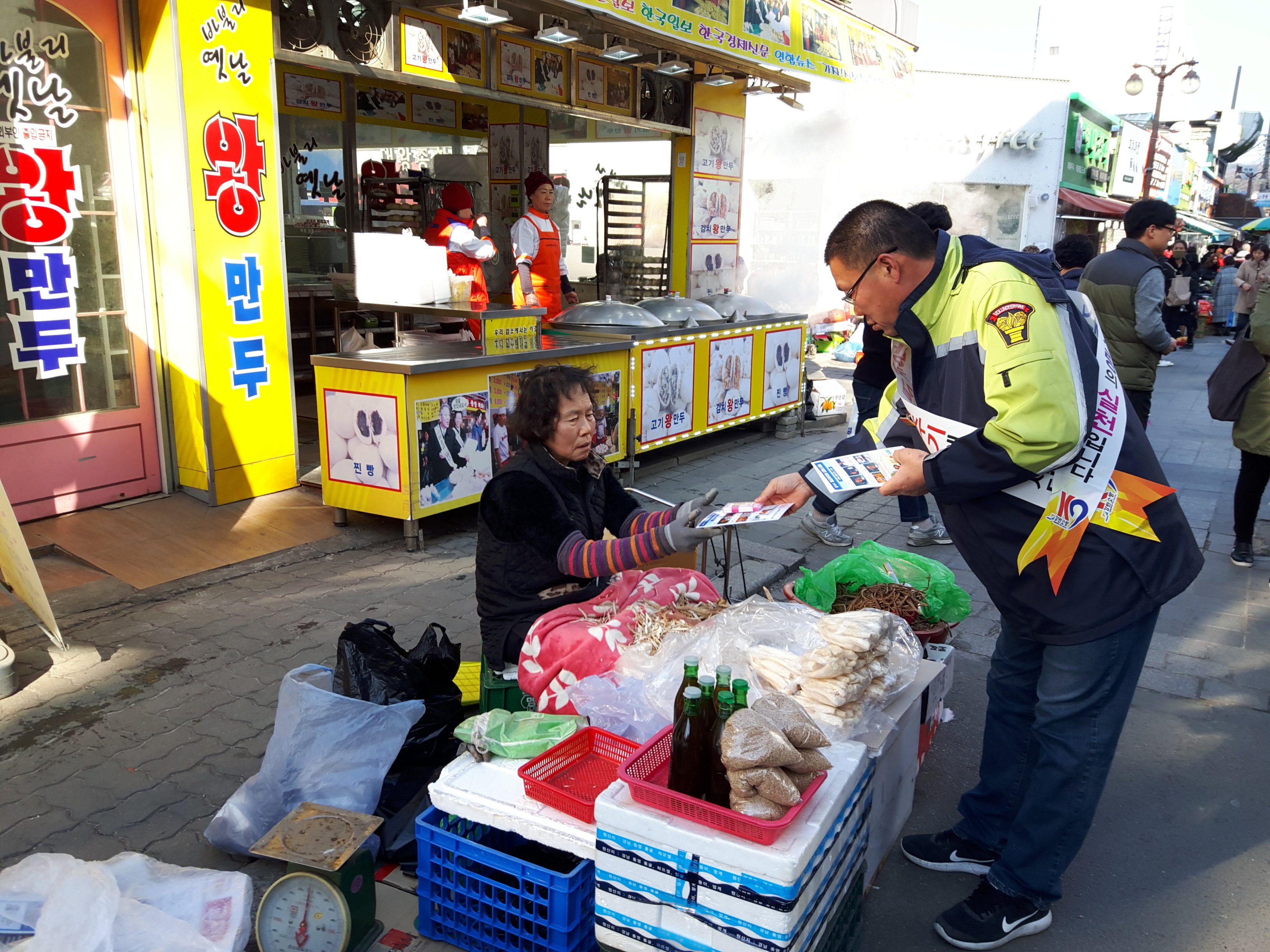 중앙시장에서 서장님, 여성대와 함께 화재예방 홍보 캠페인 진행중입니다!!!