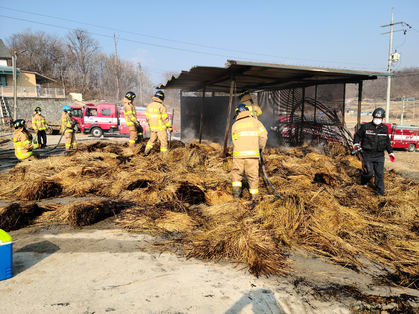 2021년2월22일 호저면 무장리 신평석화로 157-10 볏짚 창고 옆에서 용접 작업중 화재 발생