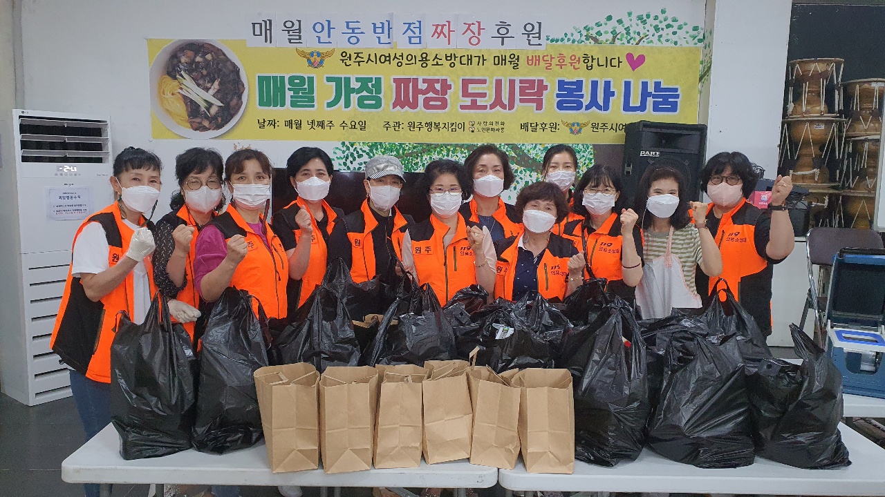 원주여성의용소방대 "2021년 6월 30일 노인문화싸롱 짜장도시락배달 "
