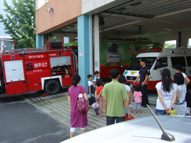 원주소방서(서장 조근희) 우산119안전센터는 2010.7.16(월) 14:00 예본지역아동센터에서 원생, 교사포함 20여명이 우산센터를 방문하여 소방서견학의 시간을 가졌습니다.