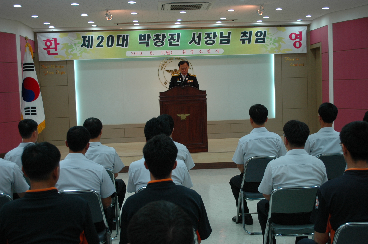 원주소방서(서장 박창진)은 2010년 8월 2일 16시 00분에 본서 대회의실에서 취임식을 실시하였습니다.