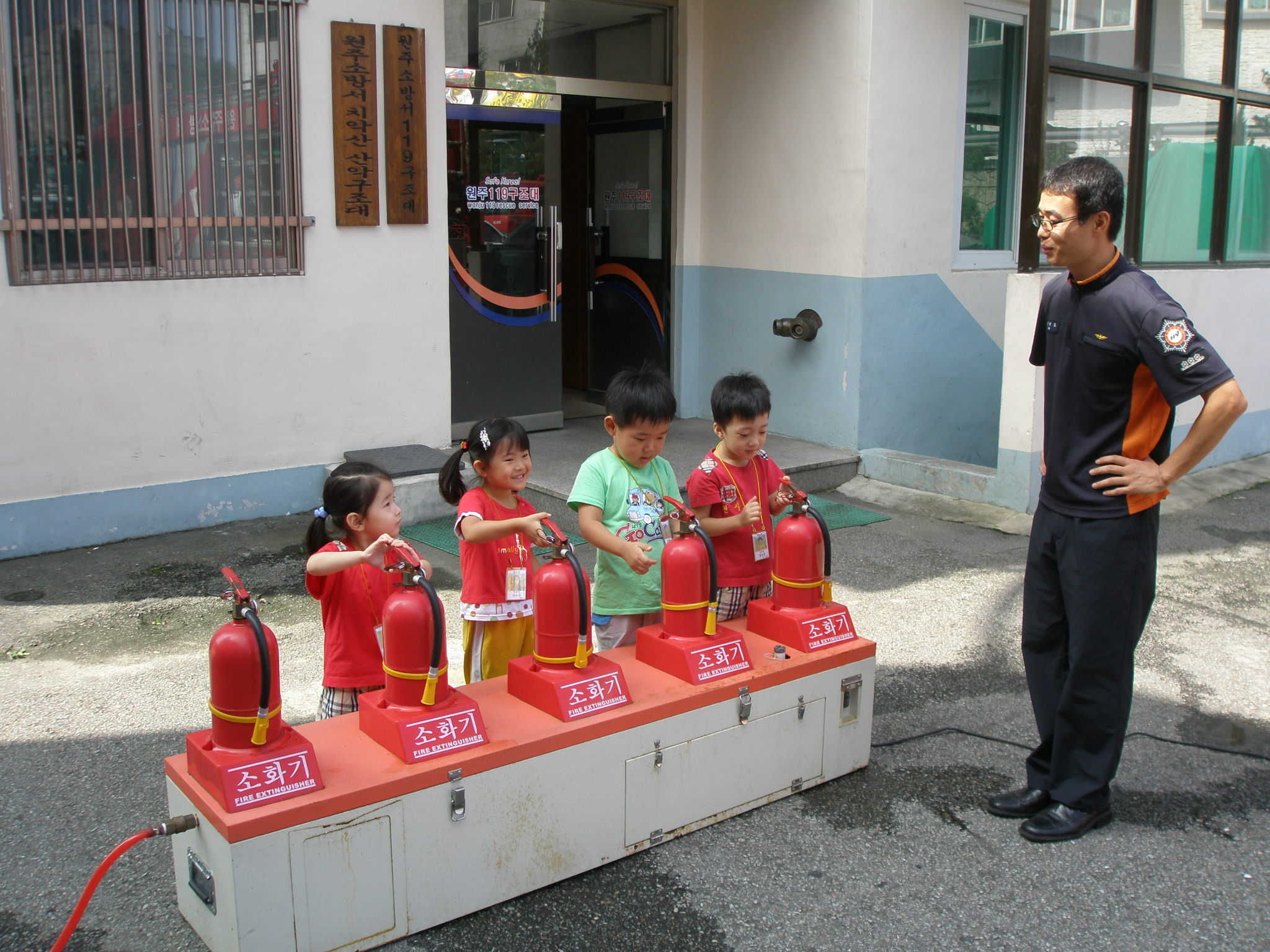 원주소방서(서장 박창진) 명륜119안전센터는 9월 14일 10시30분 천사어린이집 원생 및 지도교사 30여명을 대상으로 체험 위주 눈높이 소방안전교육을 실시하였습니다. 화재 등 각종 응급상황시 119신고방법, CPR 교육 체험 등 꿈나무들의 미래를 장식할 소중한 시간이었습니다.특히 물소화기 체험시 아이들의 진지한 눈빛에서 대한민국을 이끌어갈 소방관의 멋지고 든든한 모습을 보는 듯 했습니다.