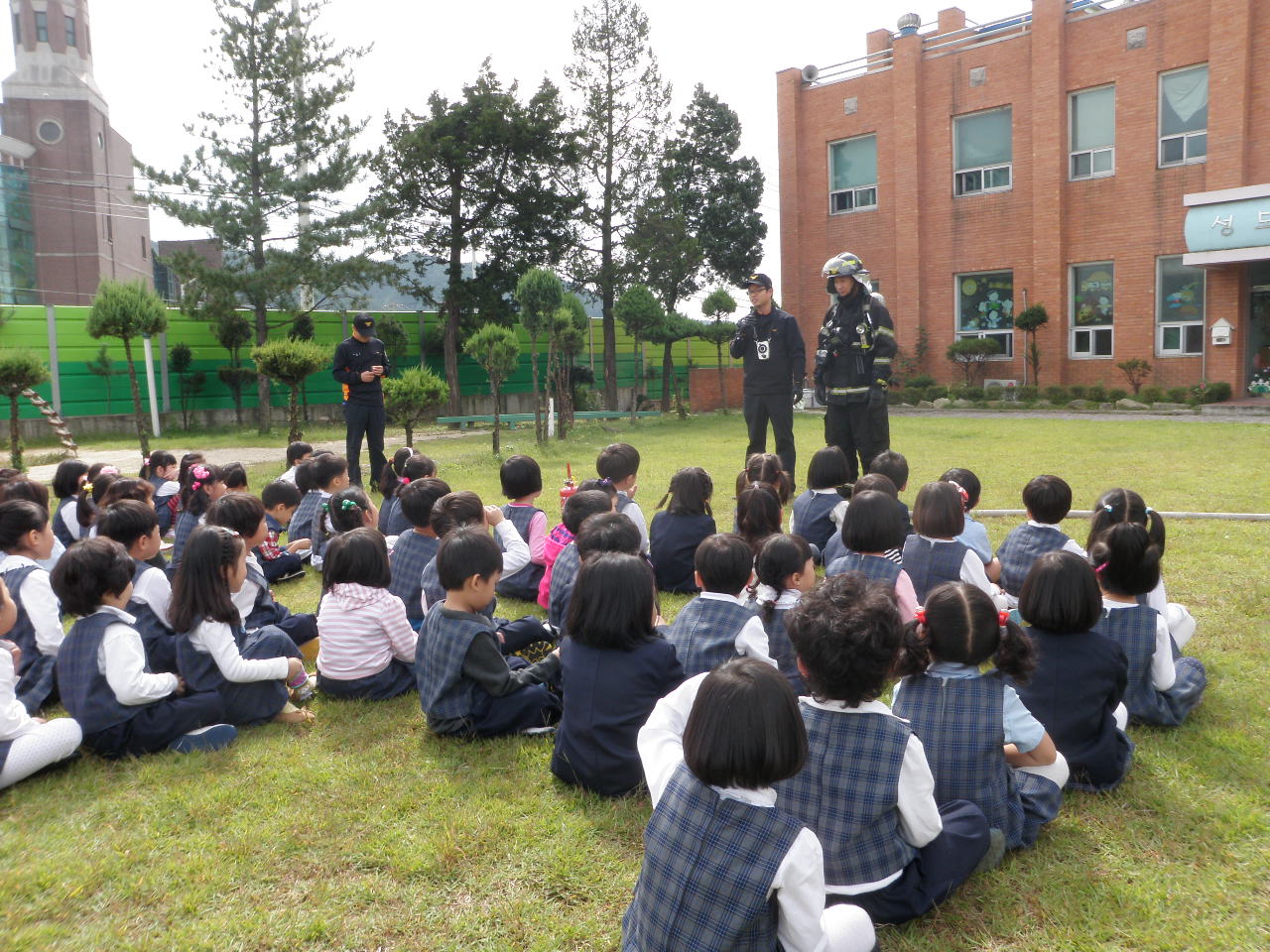 금일 교육은 생활주변에서 발생할 수 있는 각종 안전사고의 유형과 예방요령, 화재 등 각종 응급상황시 119신고방법, 화재 발생시 대처요령 및 방수시범, 소방차량 및 장비 견학 등 체험학습의 시간으로 진행되었습니다.