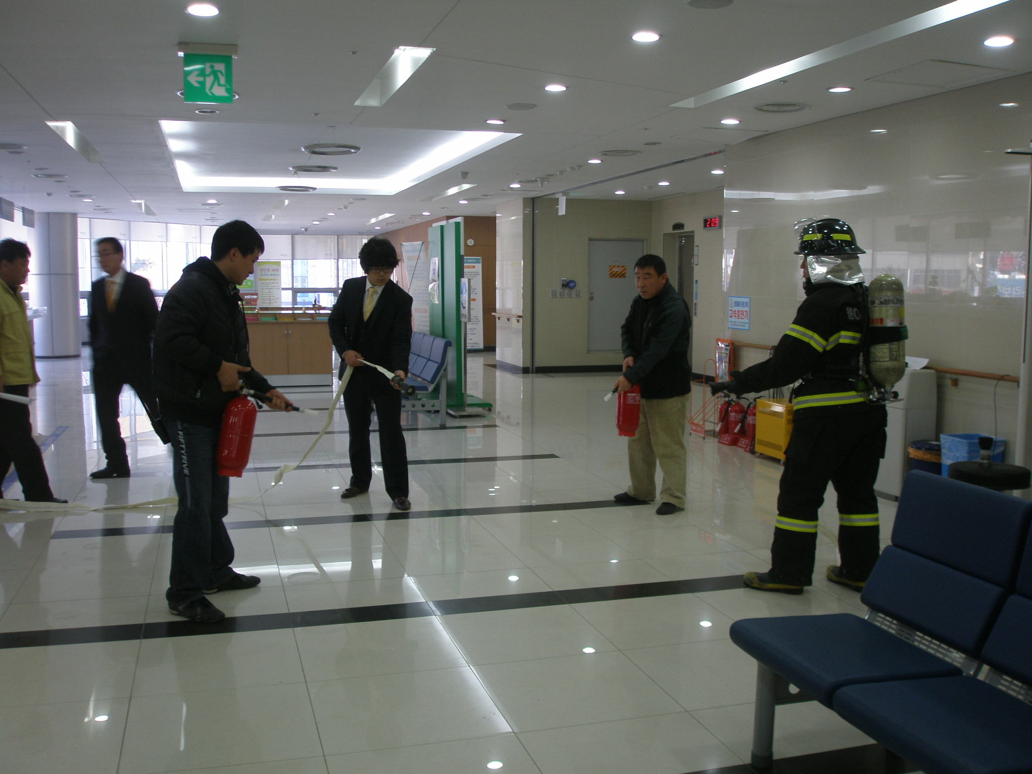 원주소방서(서장 박창진) 명륜119안전센터는 2010. 12. 20(월) 14시에 건강문화센터(원주보건소) 현지적응훈련을 실시하였습니다. 1부 행사로는 2층 접수실에 가상 화점을 정해놓고 보건소 관계자와 합동으로 신속한 화재 진압을 목적으로 훈련을 실시 했습니다. 방재통합실을 방문해 향후 사고 발생시 원활한 협조를 당부했습니다. 2부행사로는 구급대원들이 직접 심폐소생술 교육을 실시했습니다. 이번 훈련을 통해 보건소에 찾아주신 많이 시민분들께서 침착하게 훈련 상황을 참관 하시고 대기해 주셔서 진심으로 감사드립니다.