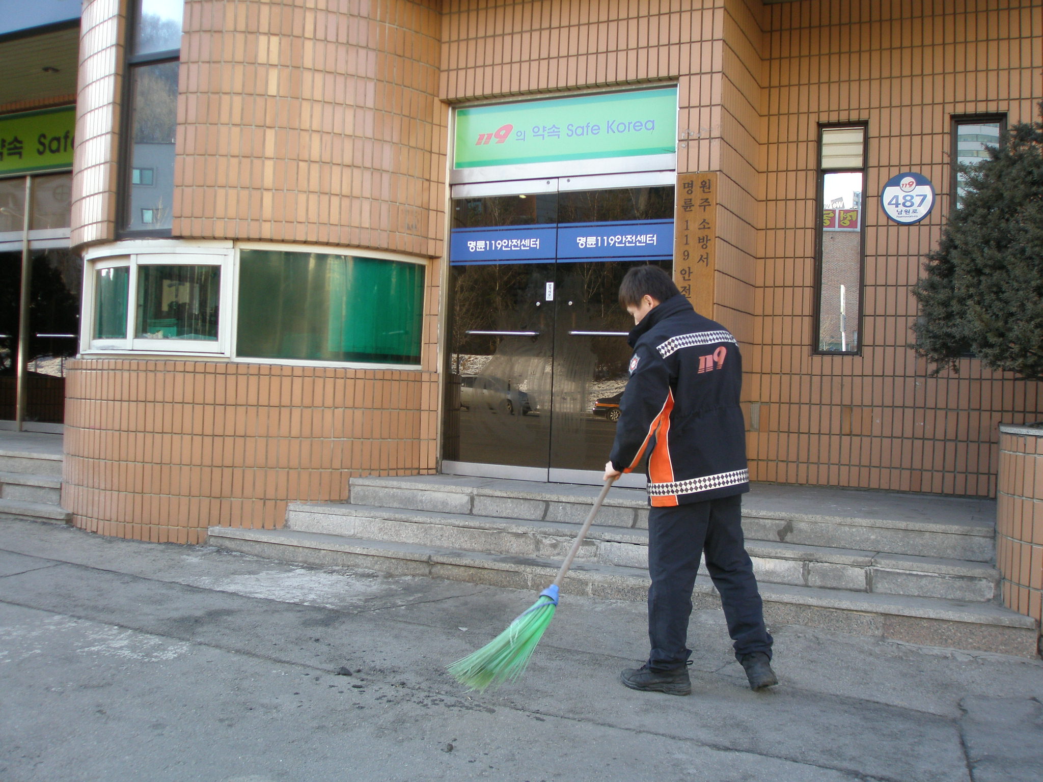 원주소방서(서장 박창진) 명륜119안전센터는 금일 센터 출입문을 위주로 청소를 실시하였습니다. 우리집 현관처럼 깨끗한 이미지로 민원인에게 다가갈 수 있는 센터가 되도록 노력하겠습니다