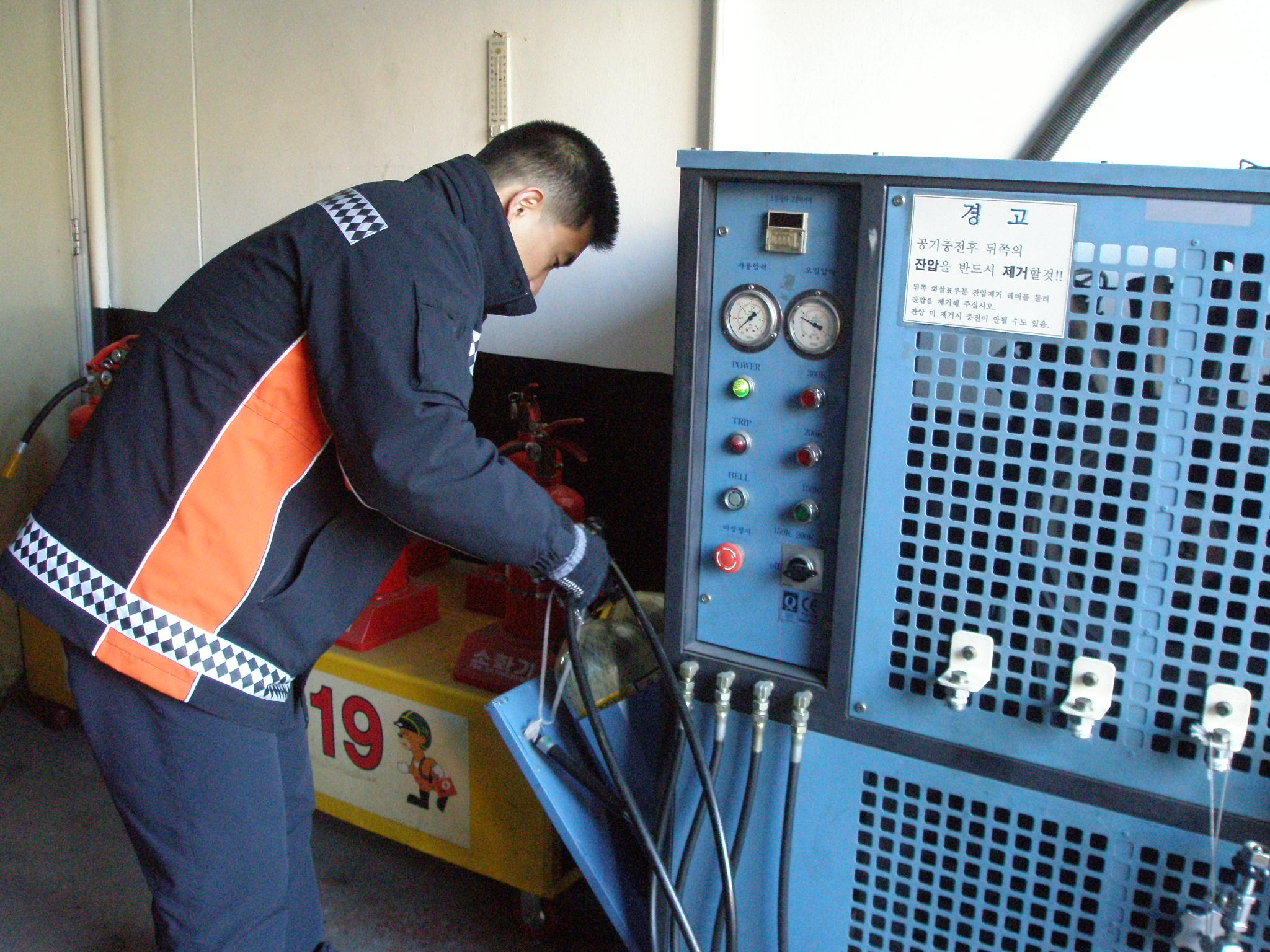 원주소방서(서장 박창진) 명륜119안전센터는 공군8전투비행단의 요청으로 공기호흡기를 충전해 주었습니다. 언제나 유관기관과 적극 협조하는 명륜안전센터가 되어 친절과 봉사의 소방이미지상을 구현하는데 앞장서겠습니다.