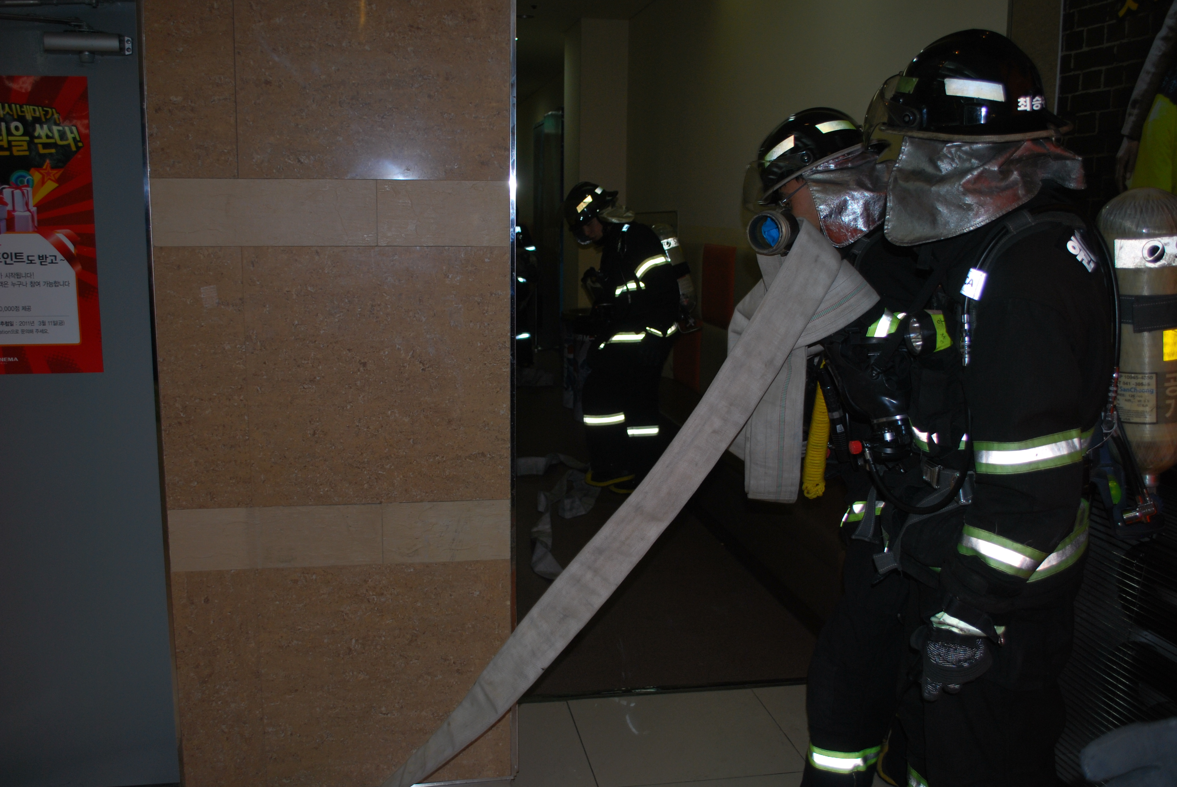 치한 선착부서인 명륜119안전센터에서는 연결송수관을 점령 6층 방수구에 65MM 2본을 연결