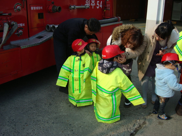 원주소방서(서장 김시균) 문막119안전센터에서는 금일 큰별어린이집 원생 및 선생님 16명을 대상으로 소방안전교육을 실시하였습니다. 추운 날씨였지만 화재시 행동요령, 소방차량 및 장비 소개, 소방차 탑승 체험 등을 하며 즐거운 시간을 함께 하였습니다.