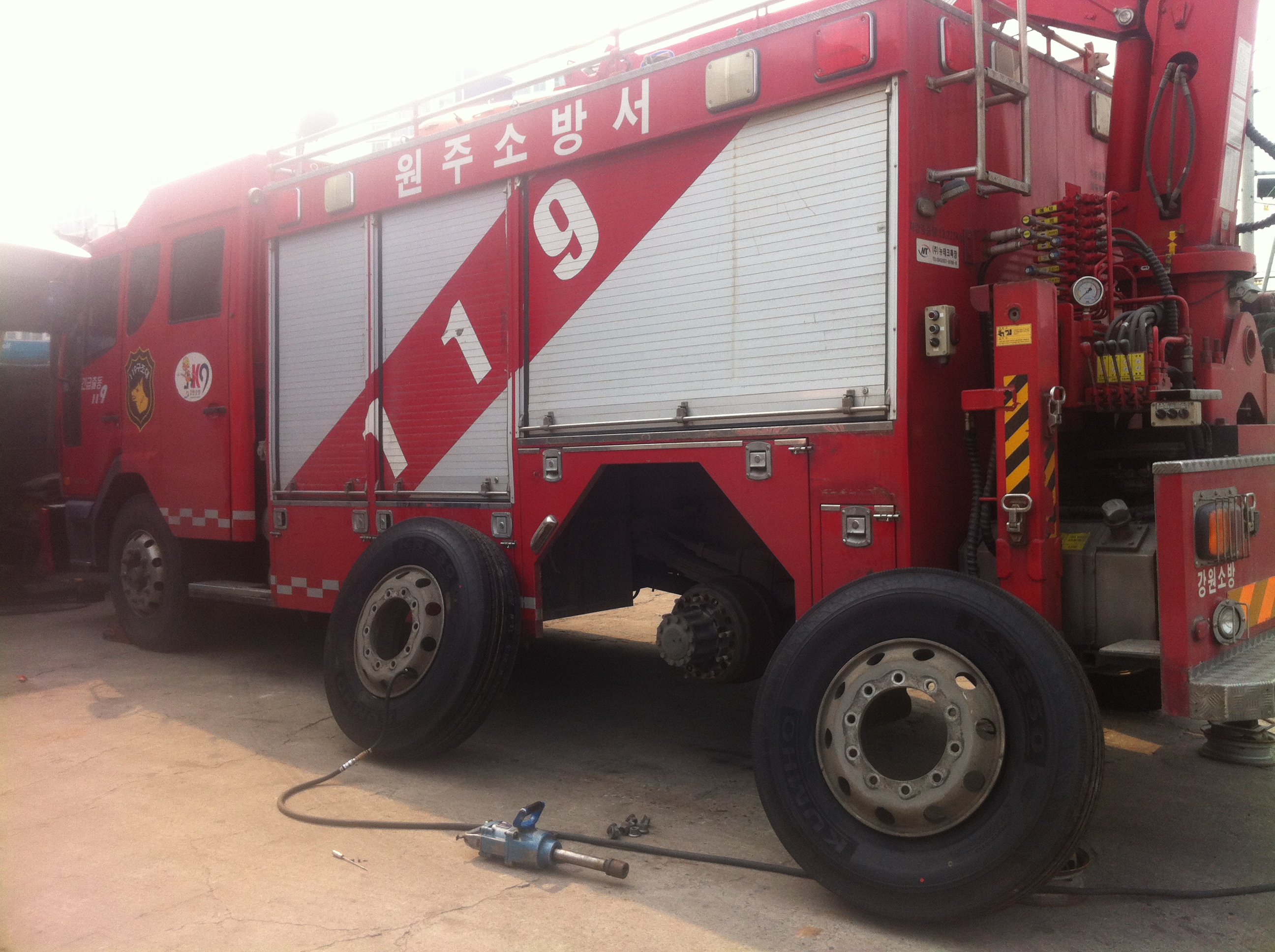 원주소방서(서장 김시균) 119구조대는 지난겨울 잘 썼던 스노우타이어를 고이 모셔두고 새타이어로 바꿔끼웠습니다.