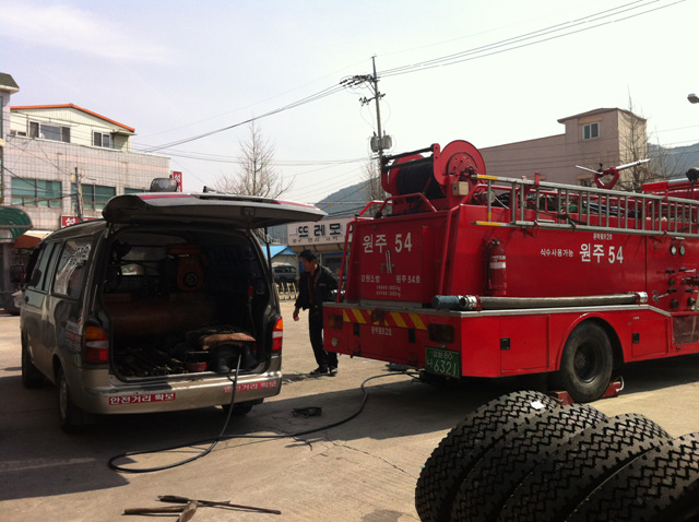 문막119안전센터에서는 금일 센터 및 지역대 펌프 및 구급차량 타이어 교체를 실시했습니다. 겨울이 완연히 지남으로 스노우타이어를 교체하고 펌프2호의 노후된 타이어도 전격 교체를 실시했습니다. 교체한 타이어로 무사히 다음 겨울을 맞이했으면 하는 바람입니다.