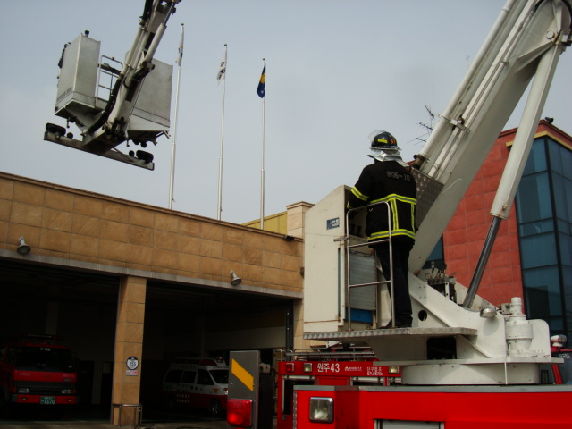 원주소방서(서장 김시균) 단구119안전센터에서는 굴절차 조작훈련을 실시하였습니다.