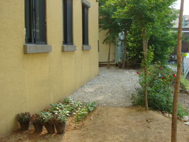 흙으로 되어 있던 곳을 하얀 자갈로 이쁘게 정리 하였습니다.
