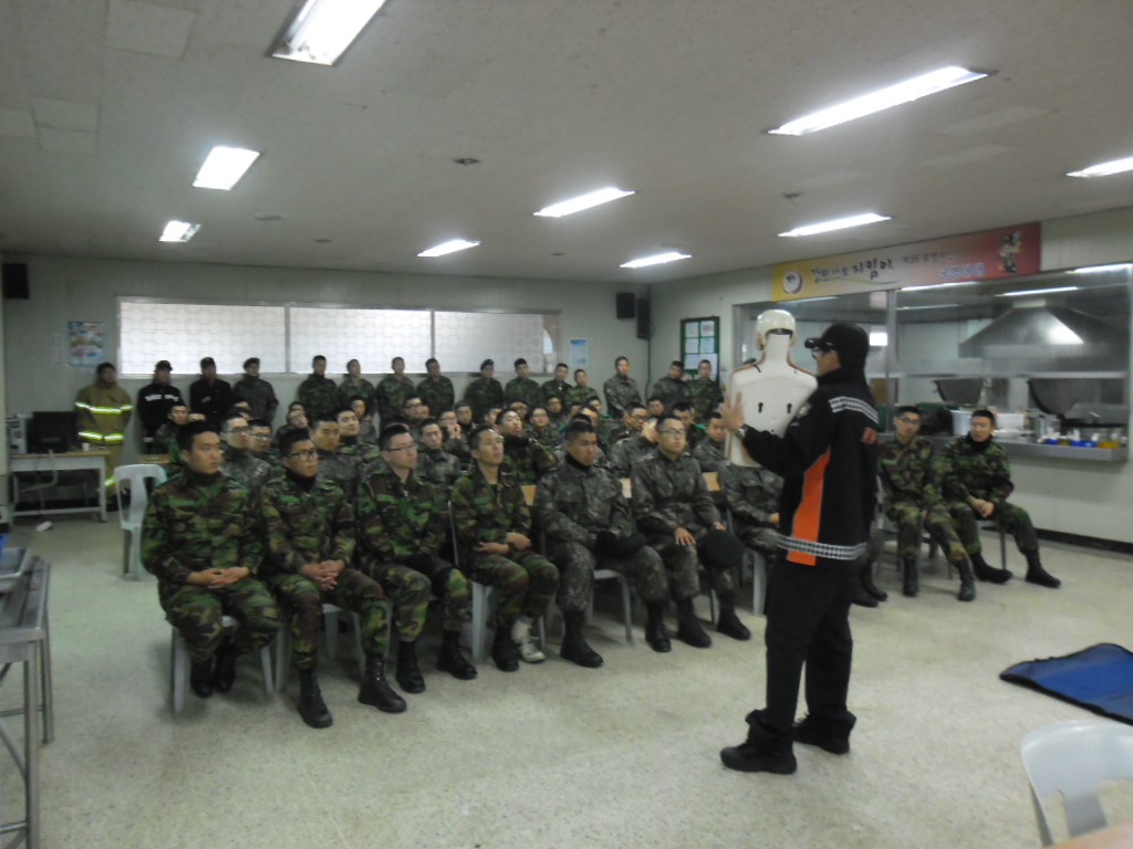 원주소방서(서장 김시균) 단구119안전센터에서는 2012. 11. 8.(목) 관설동소재 36사단 공병대대 140명을 대상으로 소방 안전 교육을 실시하였습니다. 우리나라 국군 장병들에게 소중한 소방 안전 경험을 제공하였습니다.
