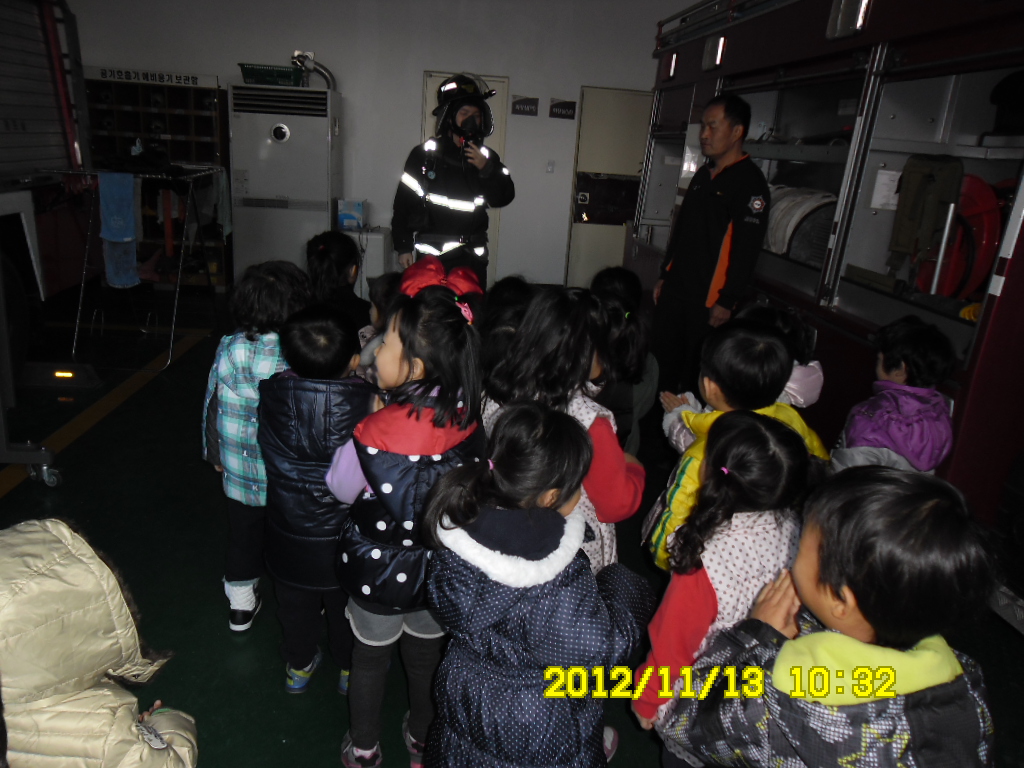 원주소방서(서장 김시균) 학성119안전센터에서 2012. 11.13.(화) 원주시 봉산동 에 위치한 배말타운어린이집 선생님 및 영유아 30여명을 대상으로 소방안전교육을 실시하였습니다. 자라나는 꿈나무들에게 화재에 대비한 안전의식을 심어 주고, 소방차량 및 소방장비들을 보고배우는 뜻깊은 자리를 가졌습니다.