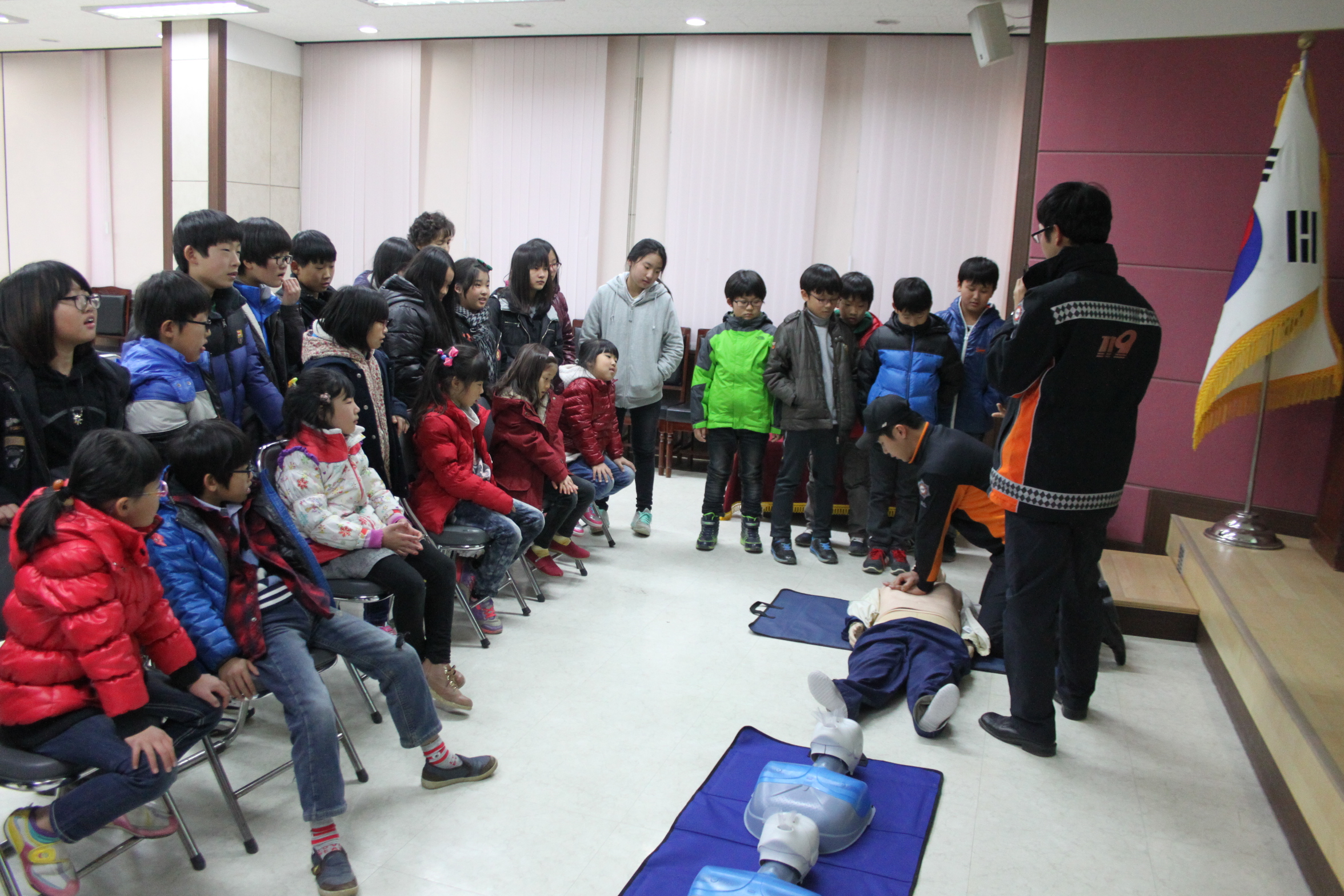 김시균 원주소방서장은 27일 소초면 소재 교학초등학교 전교생을 초청해 소방체험교육, 골든벨 퀴즈 대회, 영화상영관 대피체험 훈련을 실시했다.