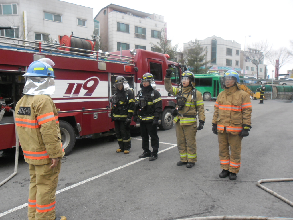 현장대응과 에서는 화재진압 4인조법훈련을 본서후정에서 실시하였습니다. 화재진압4인조법을 활용 실패하지않는 소방작전을위하여 오늘도 현장대응과의 대원들은 매서운 추위에도 불구하고 반복 또 반복하여 훈련을 실시하였습니다,