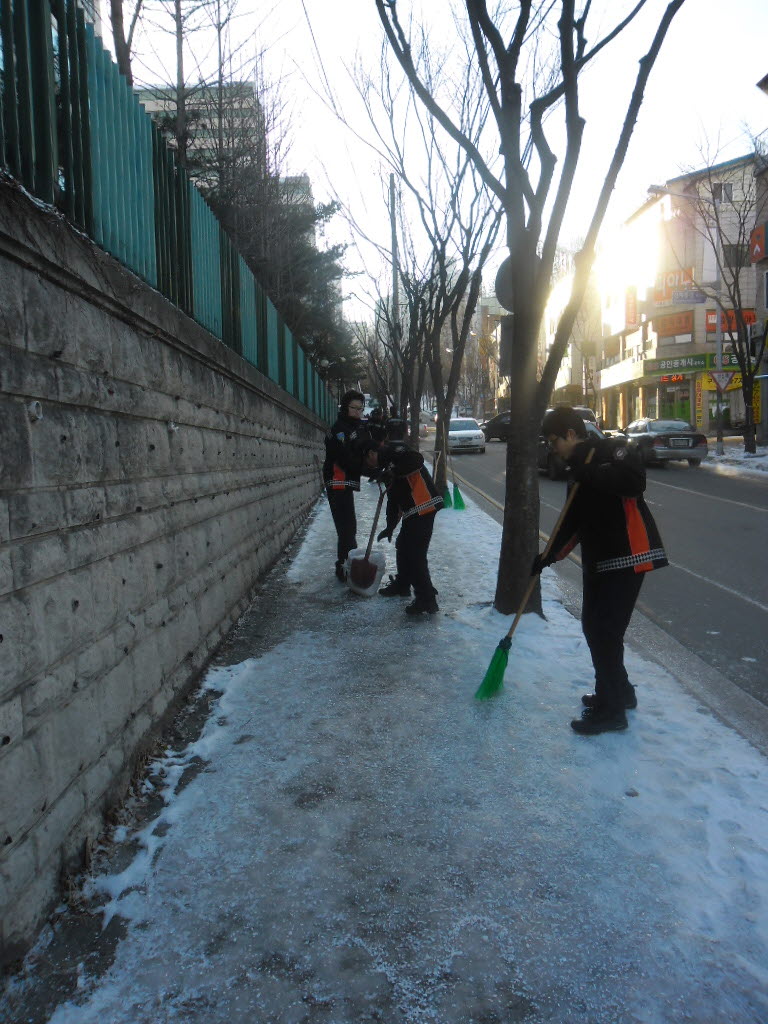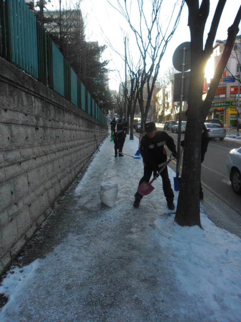 현장대응과 에서는 2월7일 목요일 아침 매서운 추위로 인하여 조성된 빙판길 안전사고 예방을 위하여 제설 및 제빙작업을 실시하였습니다.