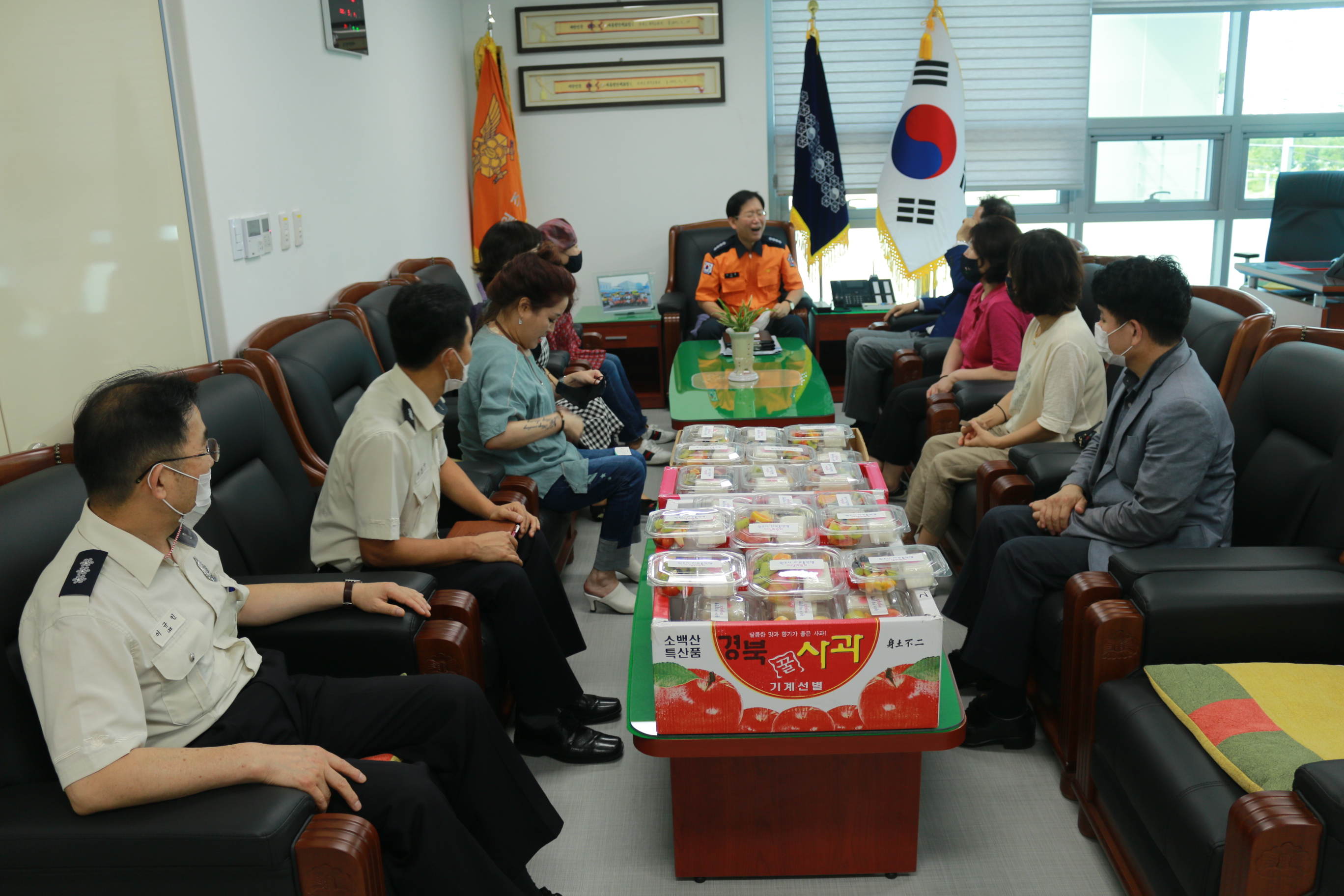 원주시 자유총연맹(회장:김인환)는 지난 4일 오후 원주소방서를 방문해 코로나19 방역 최일선에서 헌신하는 대원들에게 전달해 달라며 이기중 서장에게 응원의 간식을 전달했습니다.