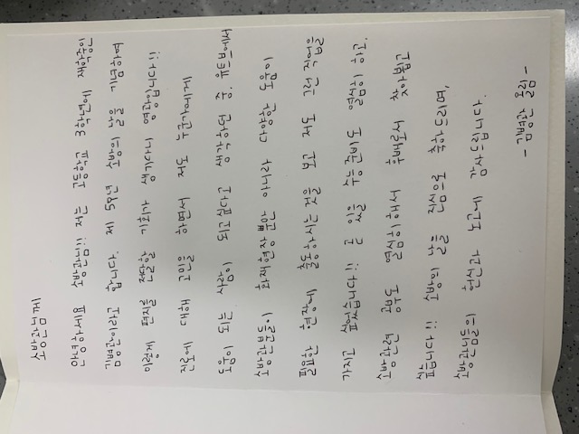 감사의 편지를 전달하였습니다.