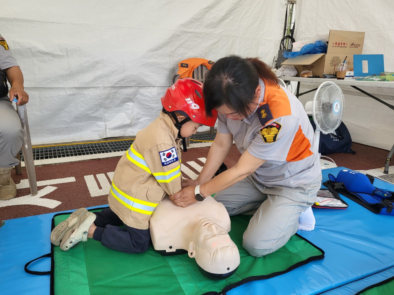 주요 내용은 ▲소소완(소화기, 소화전, 완강기) 및 화재대피방법 교육 ▲주택용 소방시설 설치 촉진 및 교육 홍보 ▲심폐소생술 체험 및 자동심장충격기 사용법 체험 ▲개인안전장비 착용 체험 ▲포토존 운영 등으로 진행되어 안전사고 없이 무사히 마무리되었다.